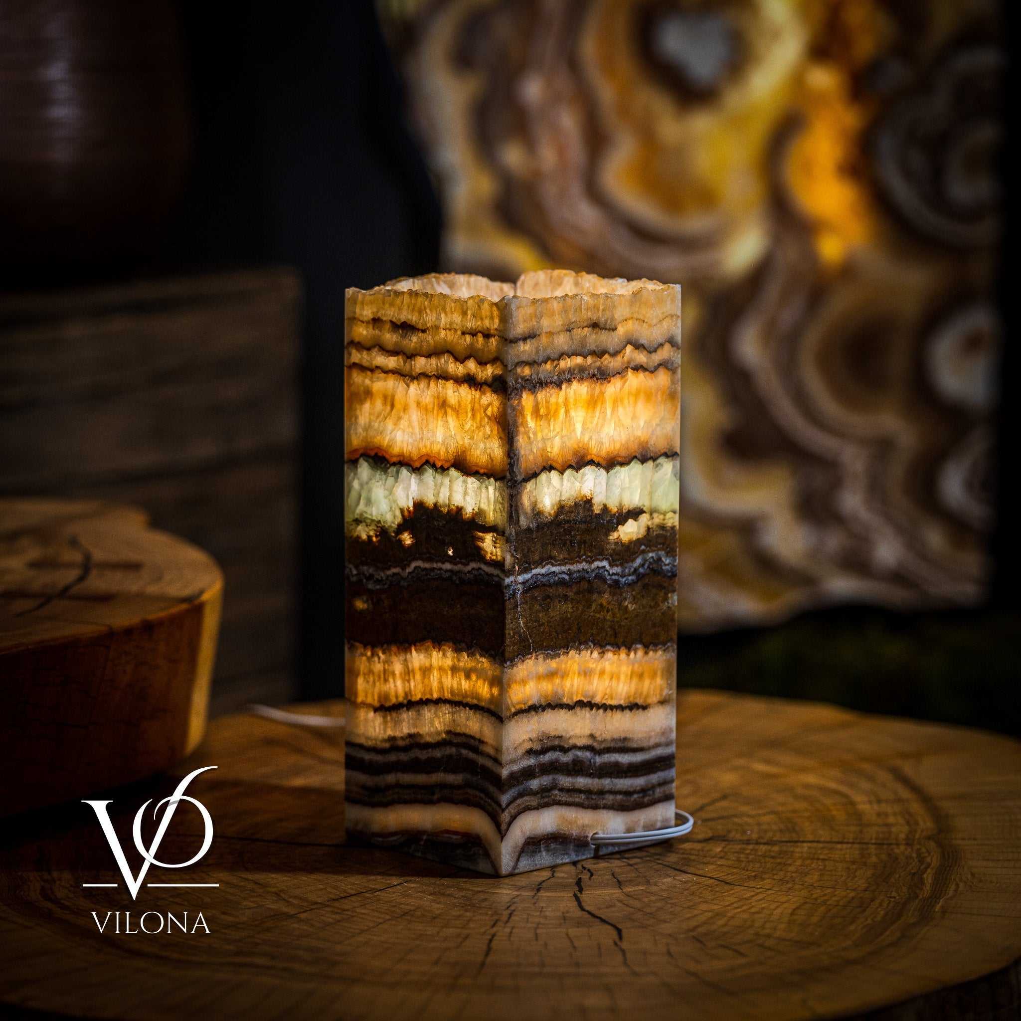 Aqua Onyx Square Table Lamp (Live Edge #3)