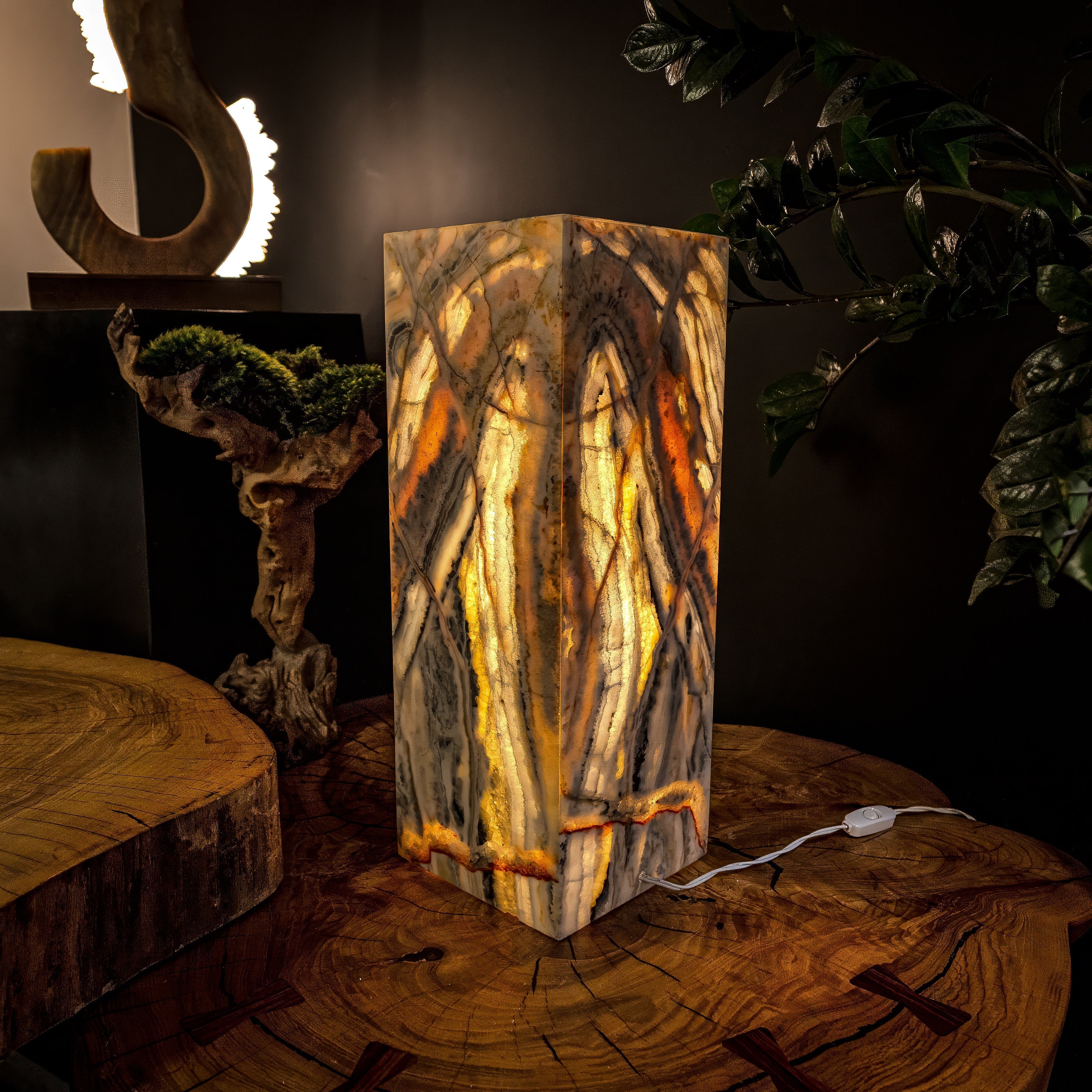 The onyx lamp displayed in this listing (21.5" Tall, 8x8" Square)