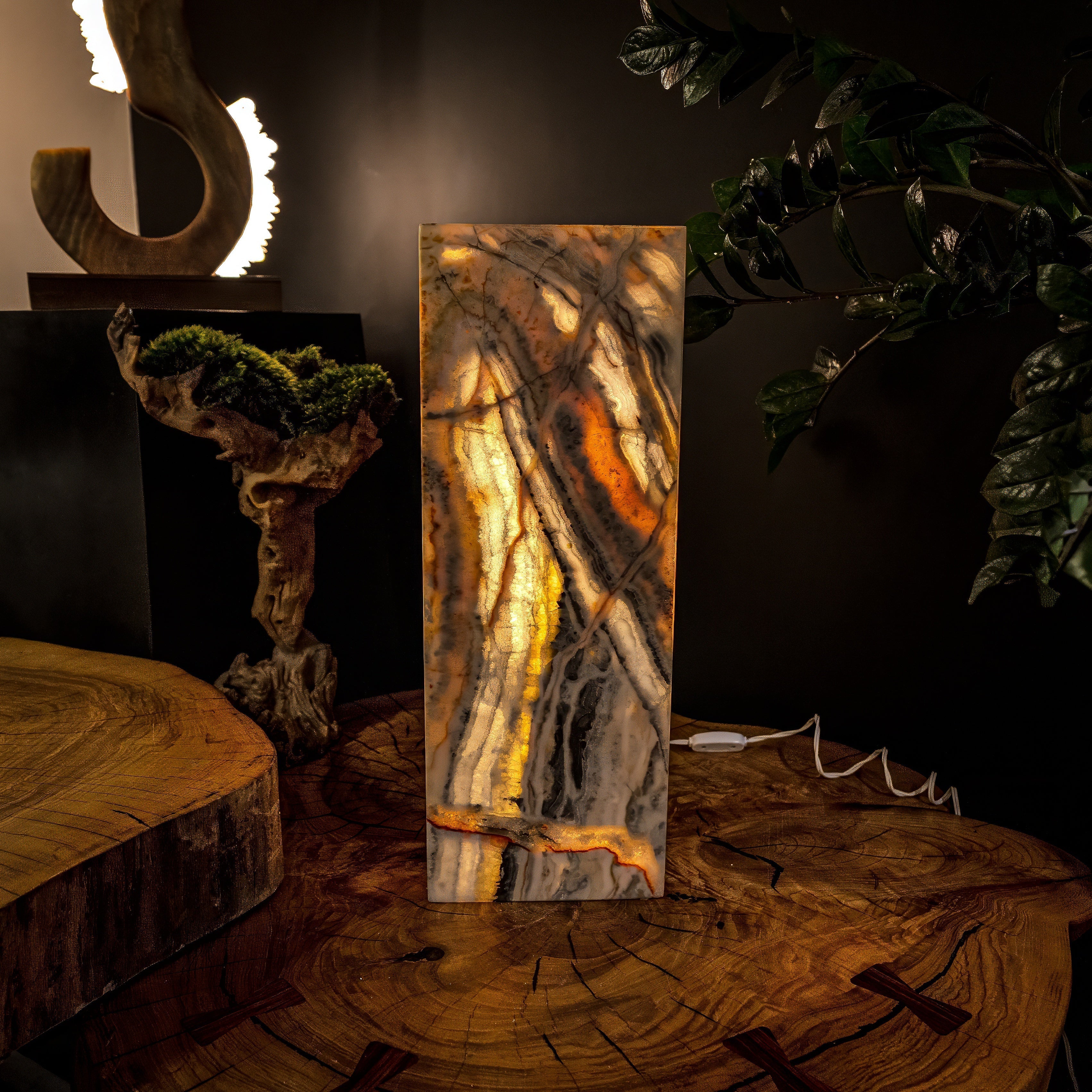 Let the soft glow of the Vilona Onyx lamp create a warm and inviting atmosphere in your home. And as for the natural beauty of the onyx stone? It's sure to bring peace and tranquility into your life. Illuminate your space with the wonders of natures finest pieces.