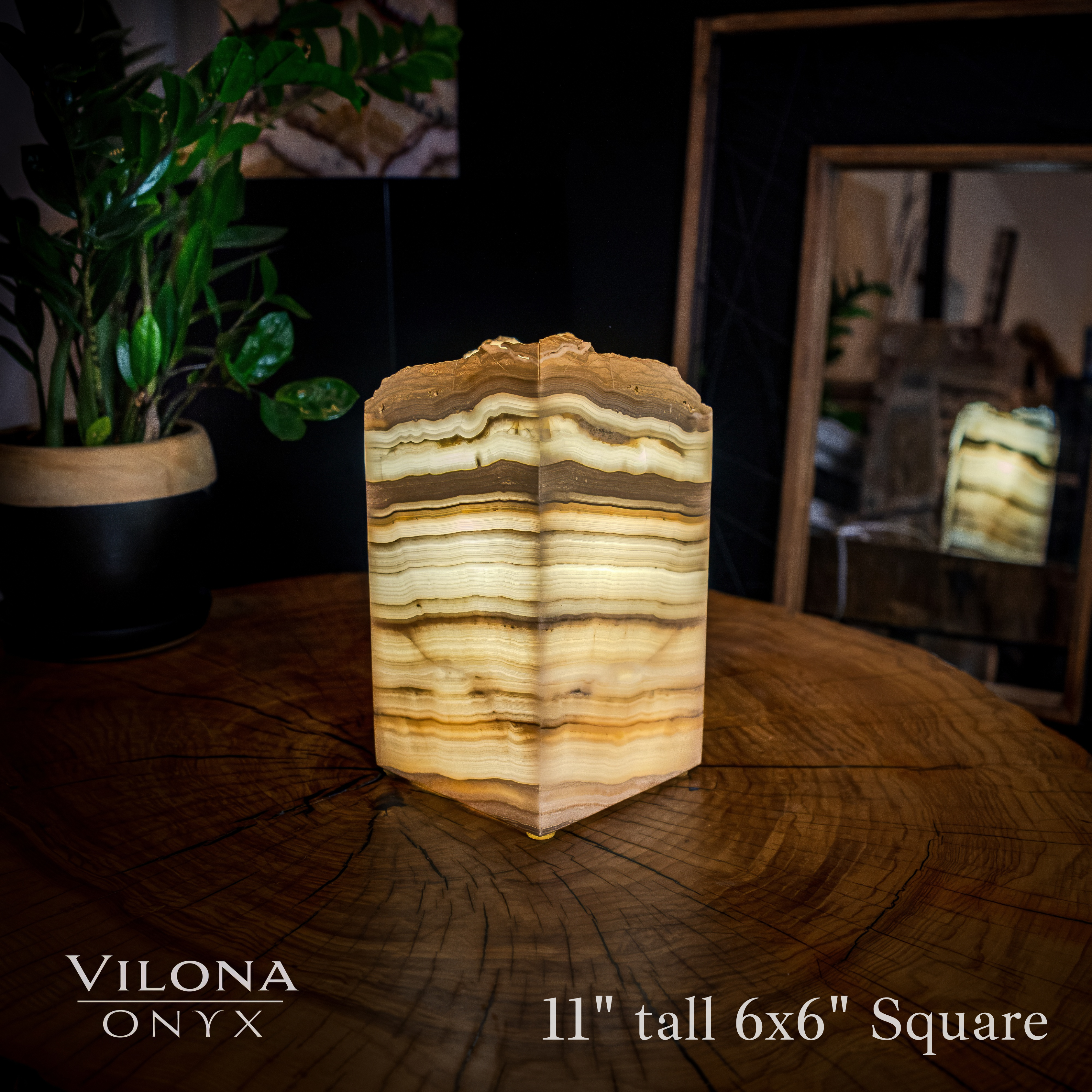 The onyx lamp displayed in this listing (11" Tall, 6x6" Square)