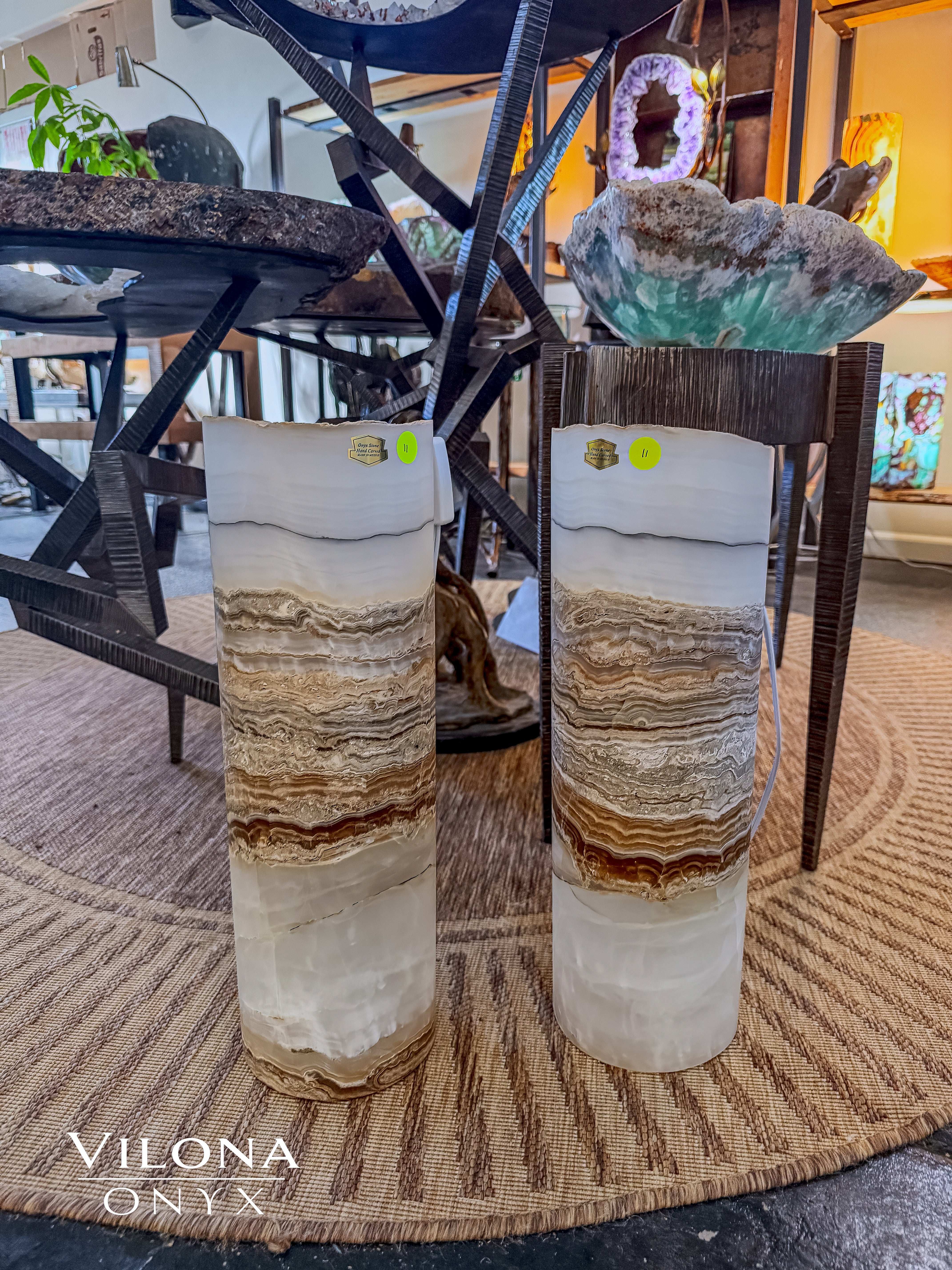 It's important to note that each piece of onyx we have in stock is unique. Just like a human fingerprint, no two lamps are identical, reflecting the individuality and exclusivity valued by our clientele. Each Vilona Onyx lamp is truly one-of-a-kind, a unique piece of art waiting to adorn your space!