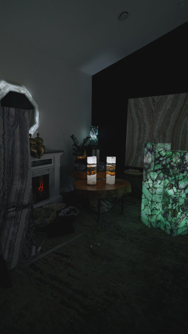 Step into a realm of timeless elegance with our Ice Onyx pieces. Infused with the unparalleled craftsmanship of the esteemed Vilona family, each lamp exudes a brilliance that transcends ordinary decor. Envelop your surroundings in the warm, radiant embrace of these hand-crafted treasures, and let the ethereal glow of this Ice Onyx elevate every moment, every interaction, and every memory within your space.