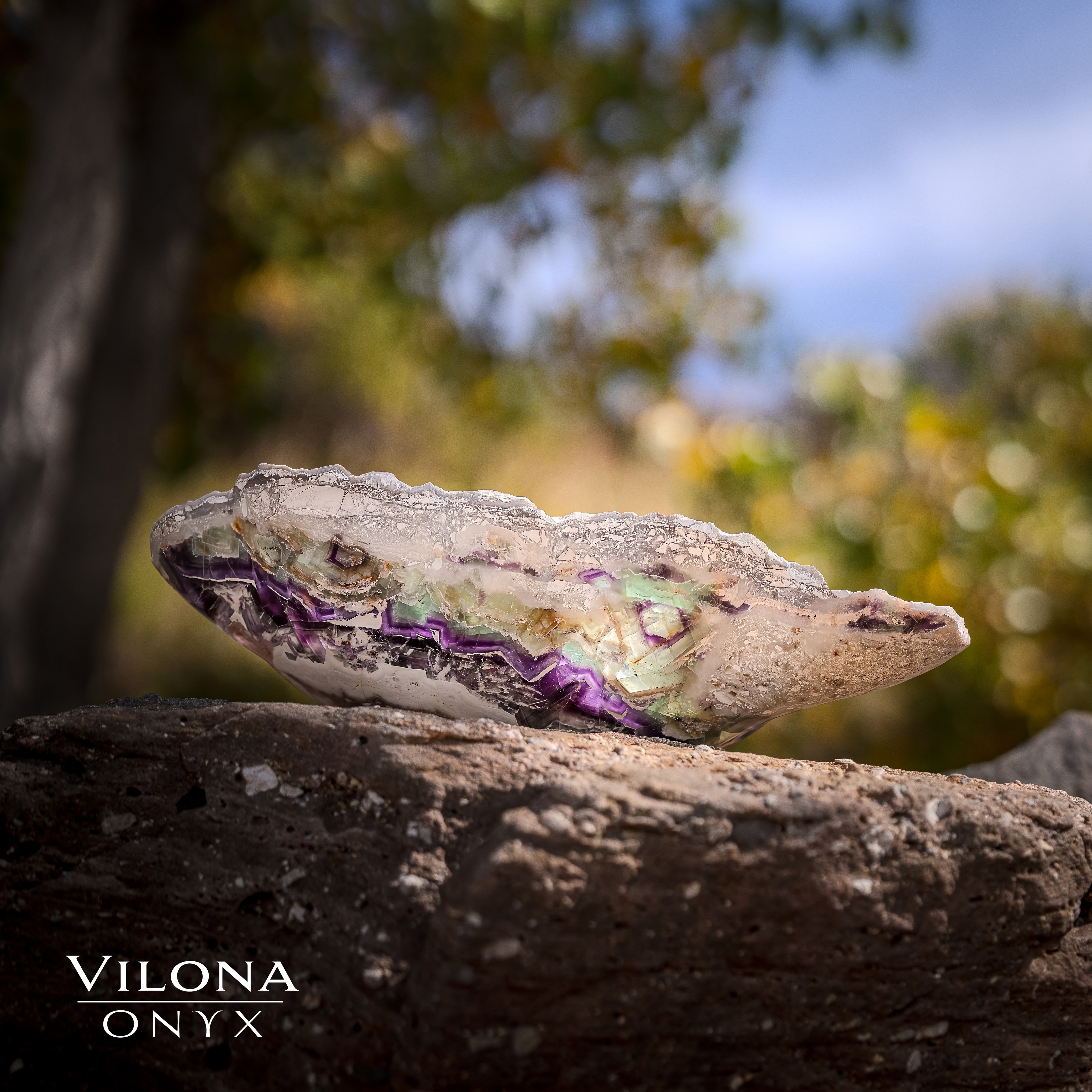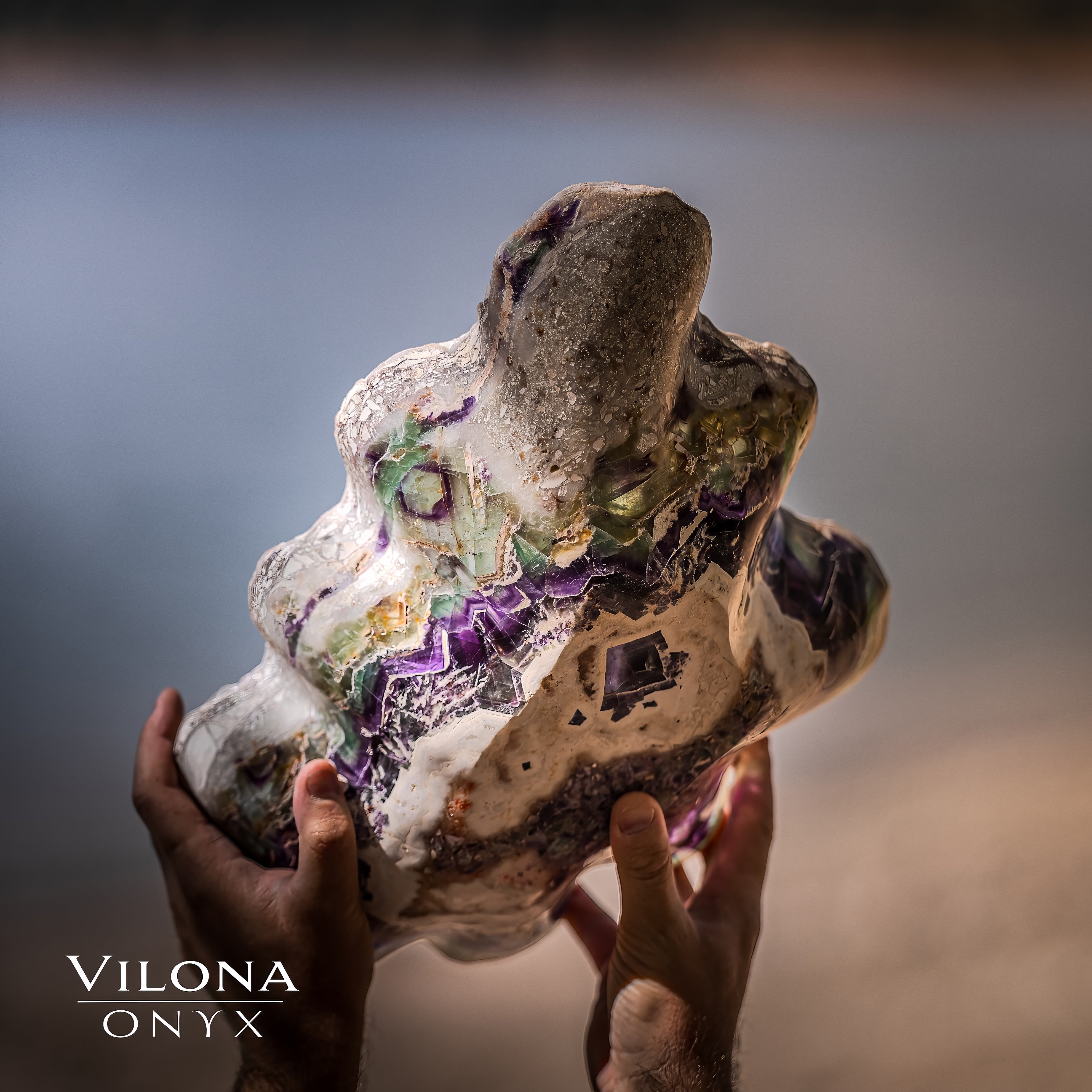 We are proud to present our latest in the Fluorite Bowls Collection—a stunning showcase of artistry handcrafted by the Vilona family. This exquisite hand carved bowl features elegant design that celebrates the natural beauty of vibrant green/purple Fluorite.