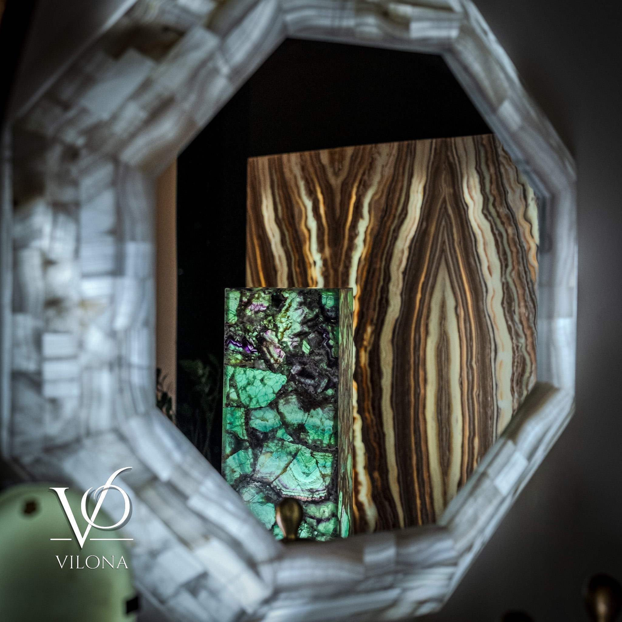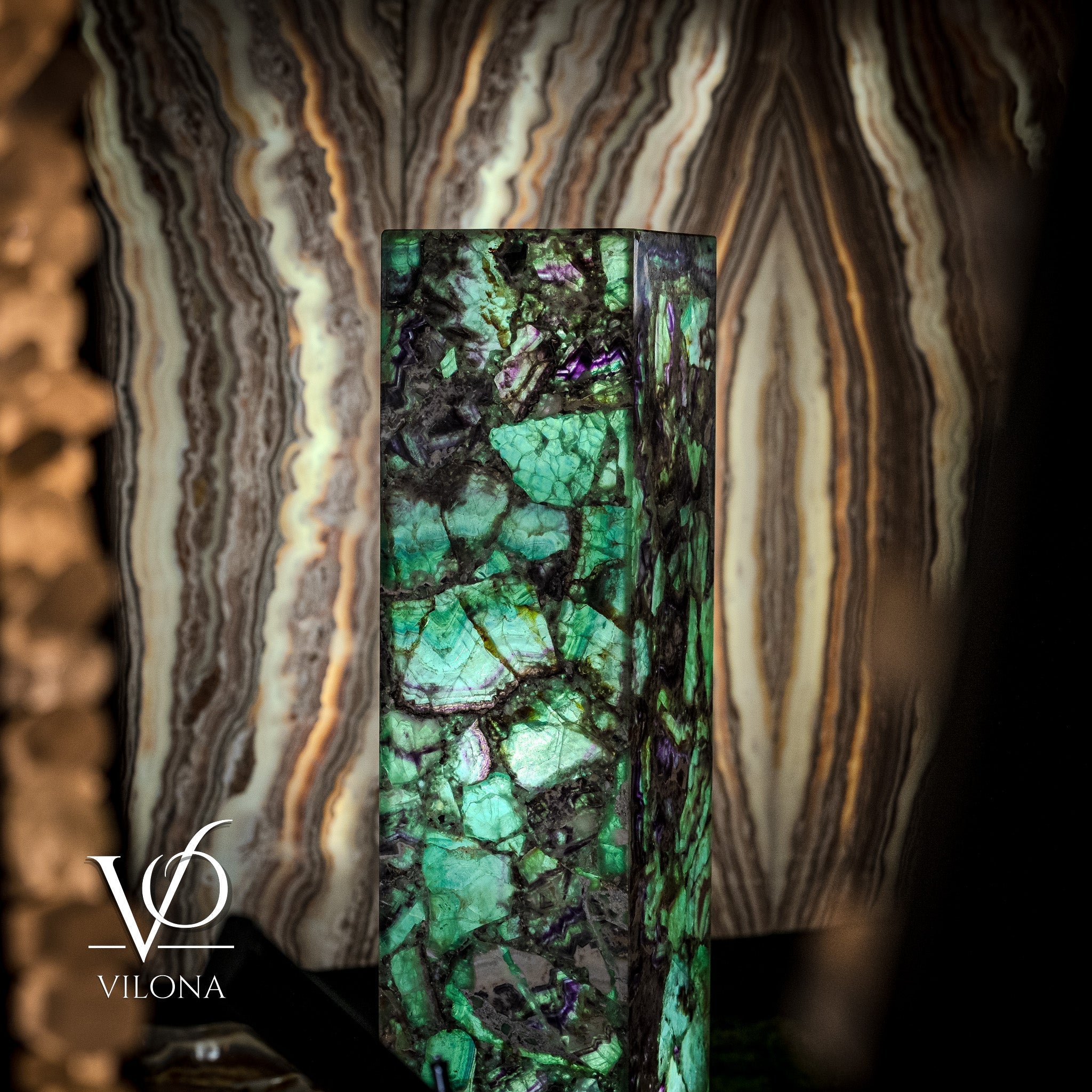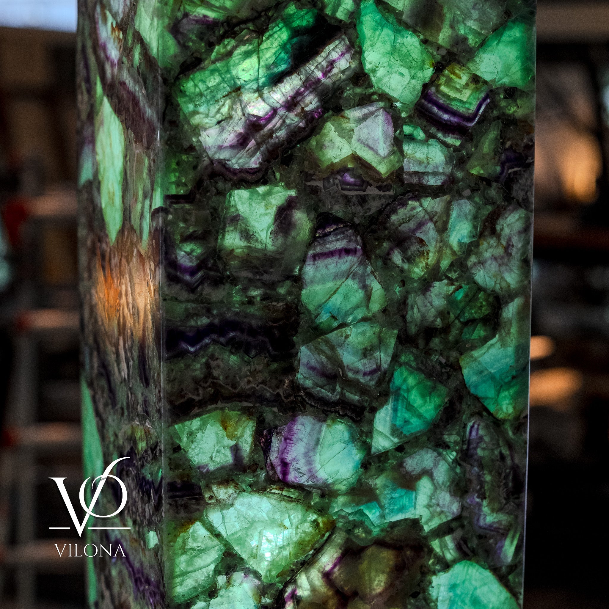 Say hello to our Fluorite Towers Collection - handmade art pieces by the Vilona family. We've made some beautiful lamps and bowls from bright green fluorite and deep onyx stone, which we get from our trusted quarry of 45 years.