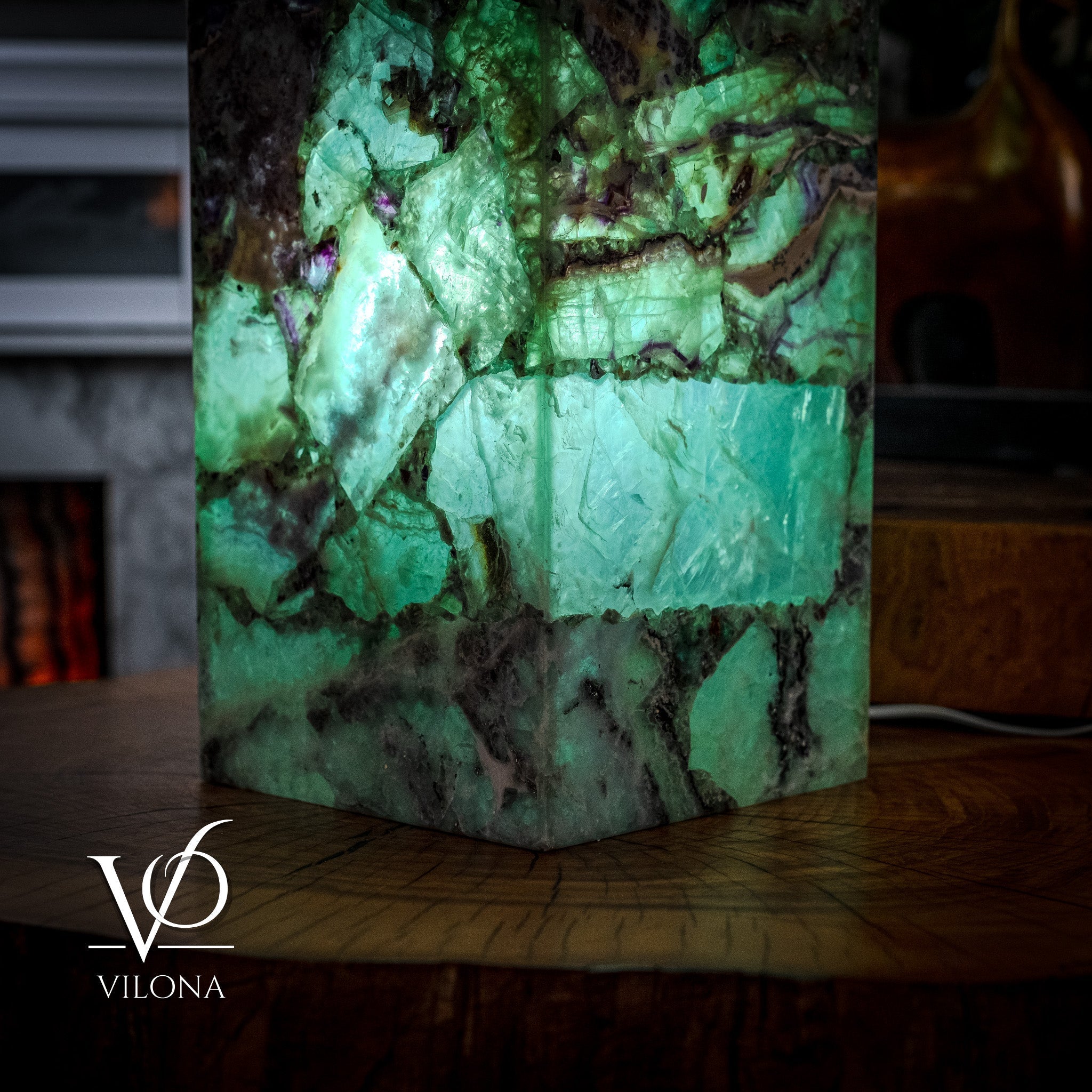 Our unique lighting decor is inspired by the beauty and rarity of these stones. Each lamp gives off a soothing glow that dances around your room, creating a calming yet enchanting atmosphere. Watch as the green, blue, and purple hues play with the light and blend into your home's vibe.