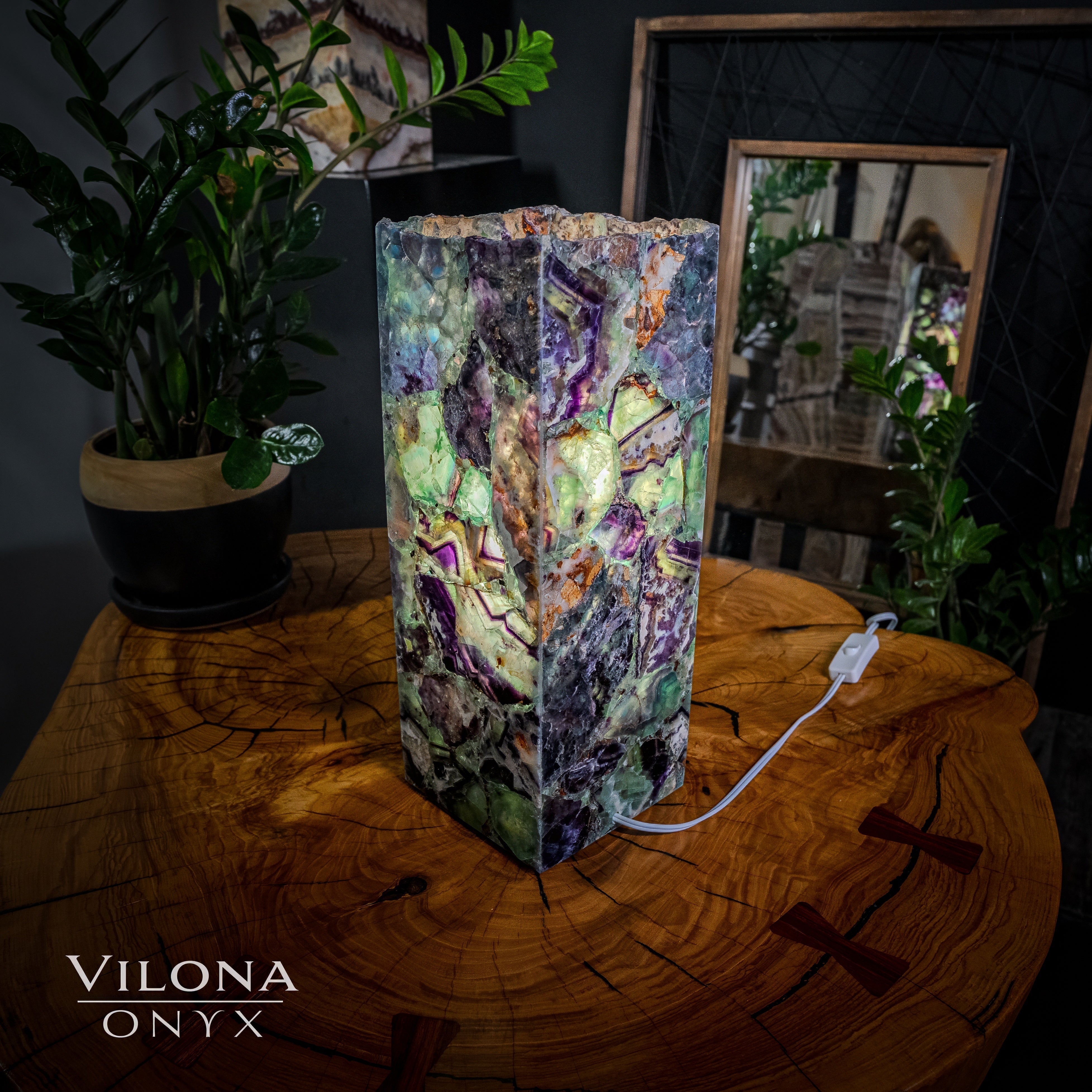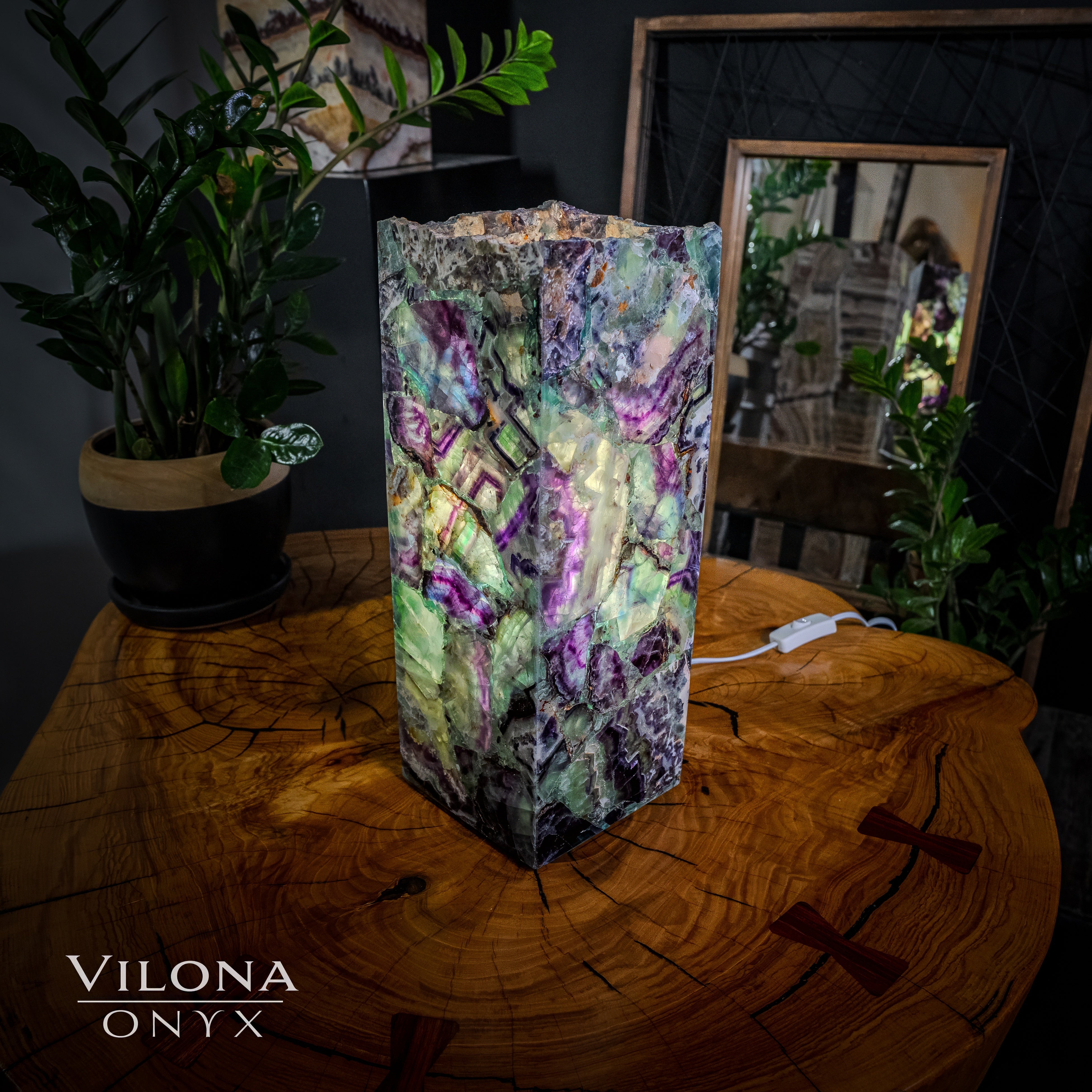 What makes our Fluorite pieces so special is that each one is unique. Each lamp is carefully carved by hand to highlight the natural beauty of the rock. This means every piece is a one-of-a-kind work of art, lovingly made while embracing nature's imperfections.