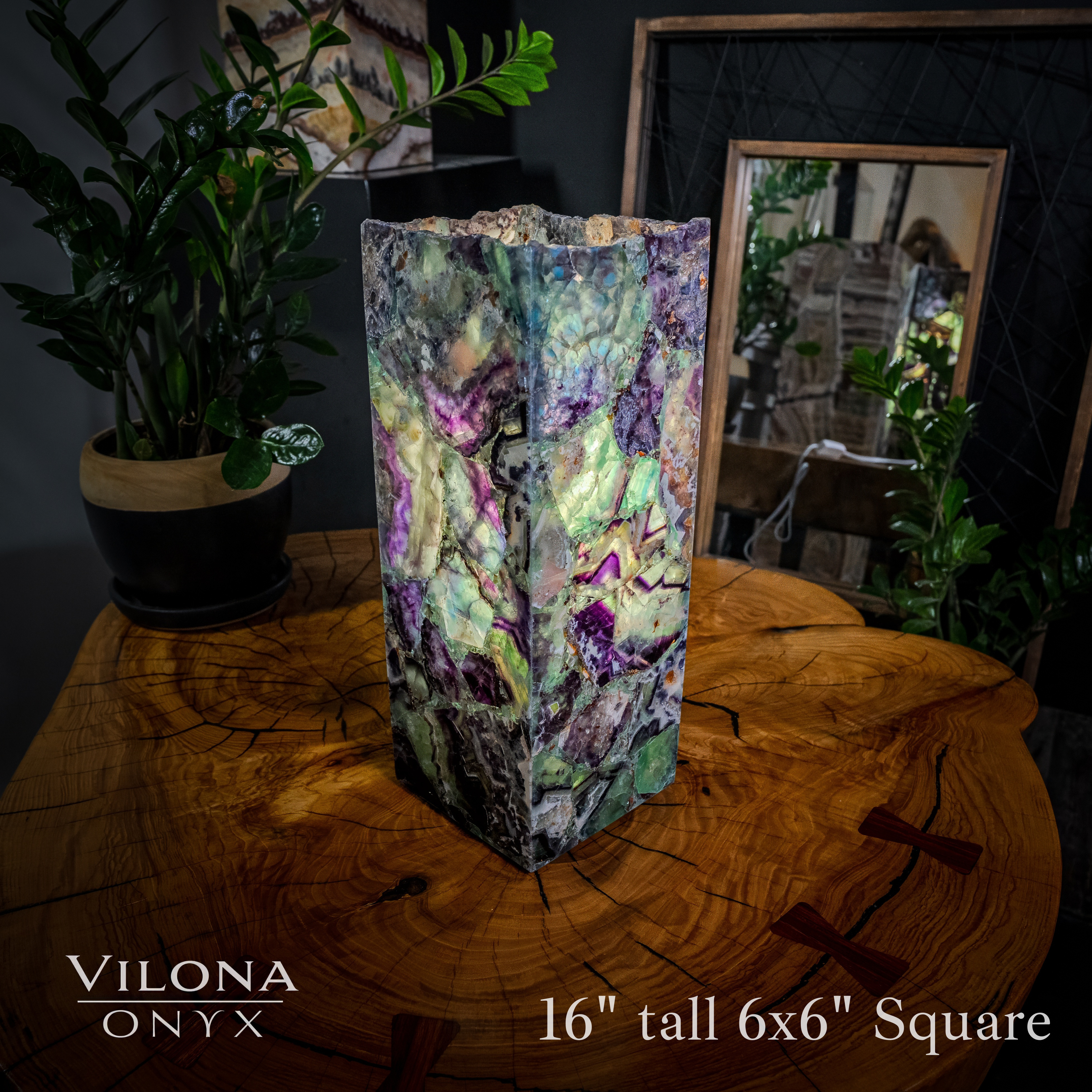 The Fluorite Lamp displayed in this listing - (16" Tall, 6"x 6" Square)