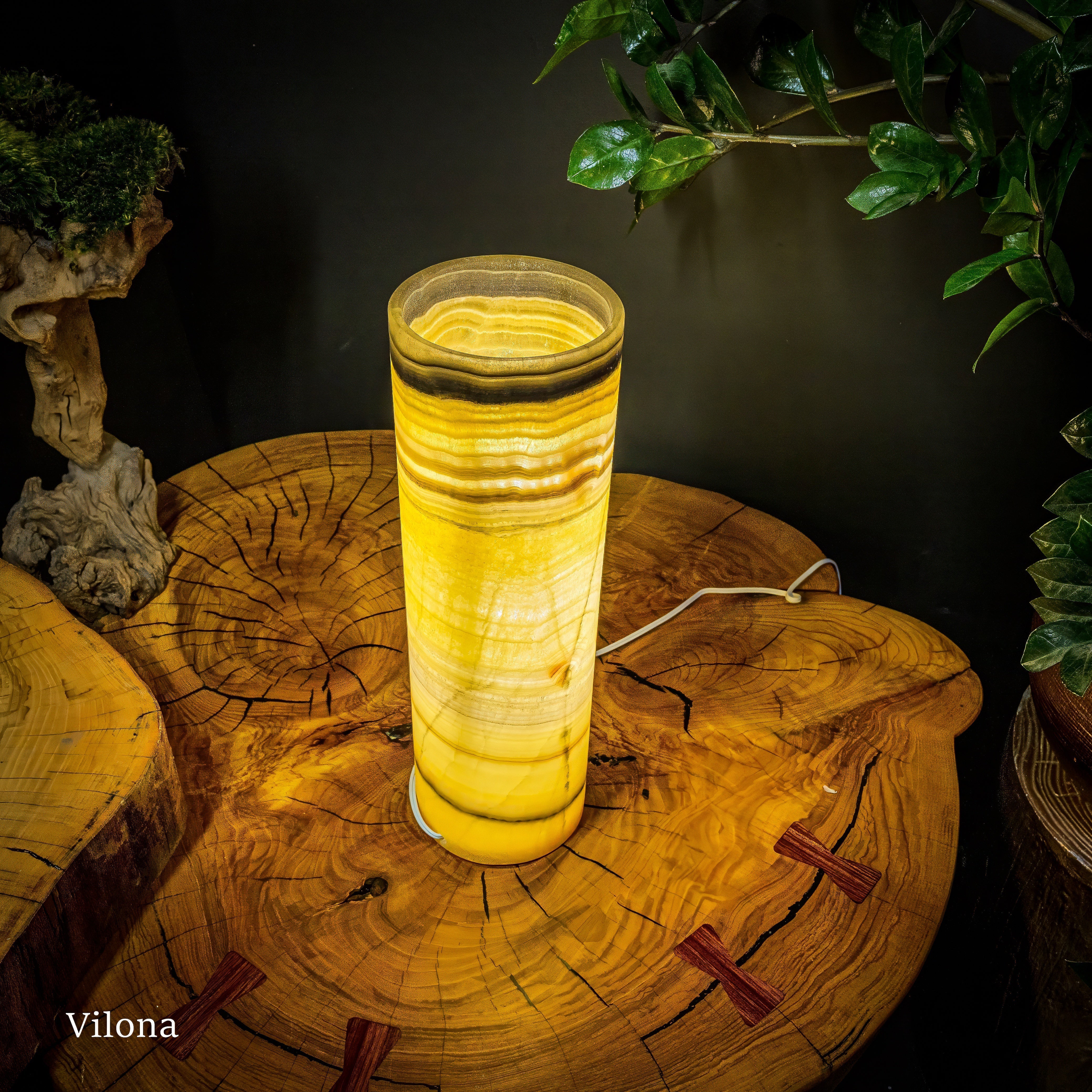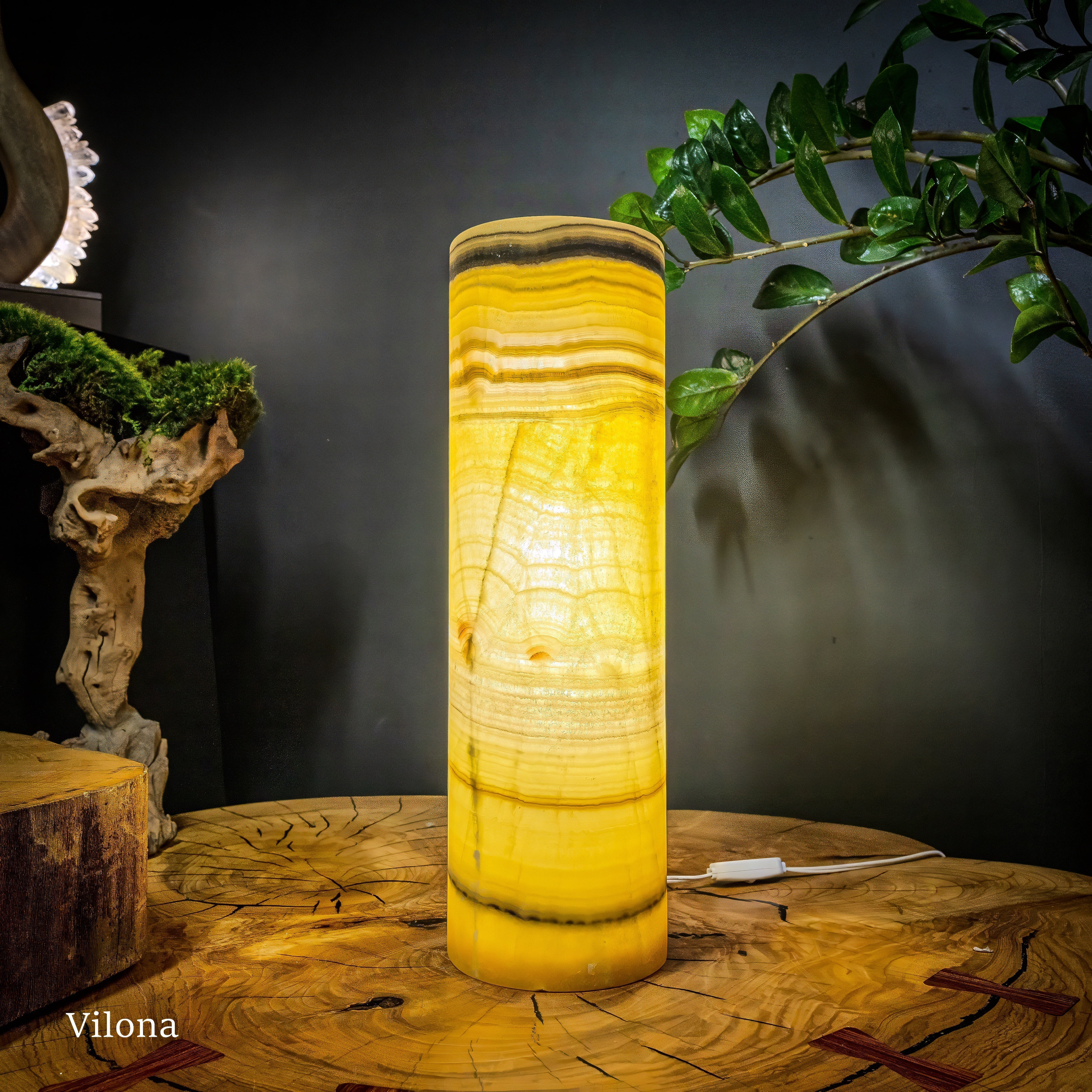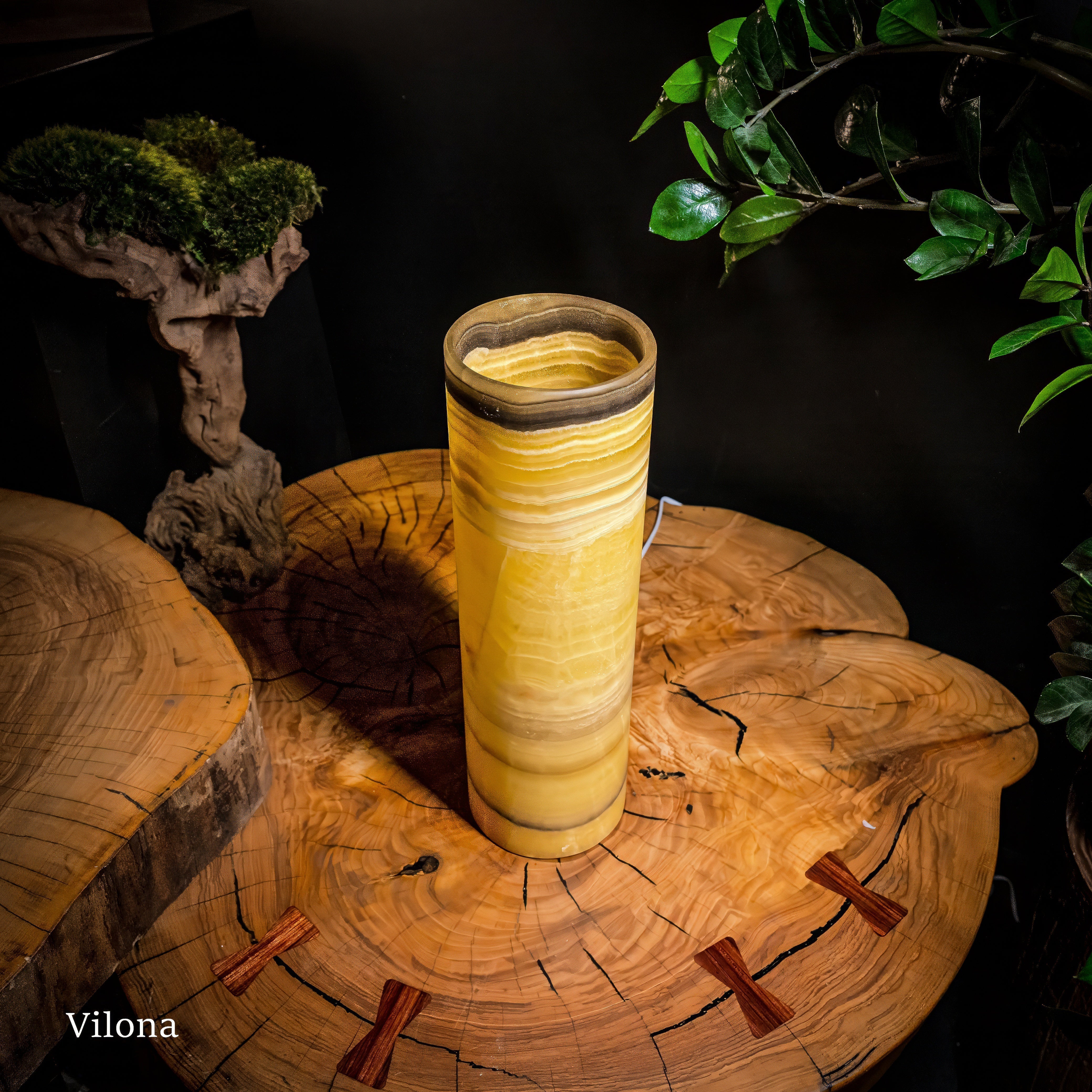Embrace the glow of our Vilona Onyx Luminaries, where each is a celebration of earthly elegance. Sourced from the finest onyx stone, every lamp is an individual masterpiece, showcasing the mesmerizing hues and patterns that only nature can create. Our collection extends its homage to natural beauty with an exquisite selection of luminaries, tables and accent pieces thoughtfully designed to bring the splendor of crystalline minerals into your home.