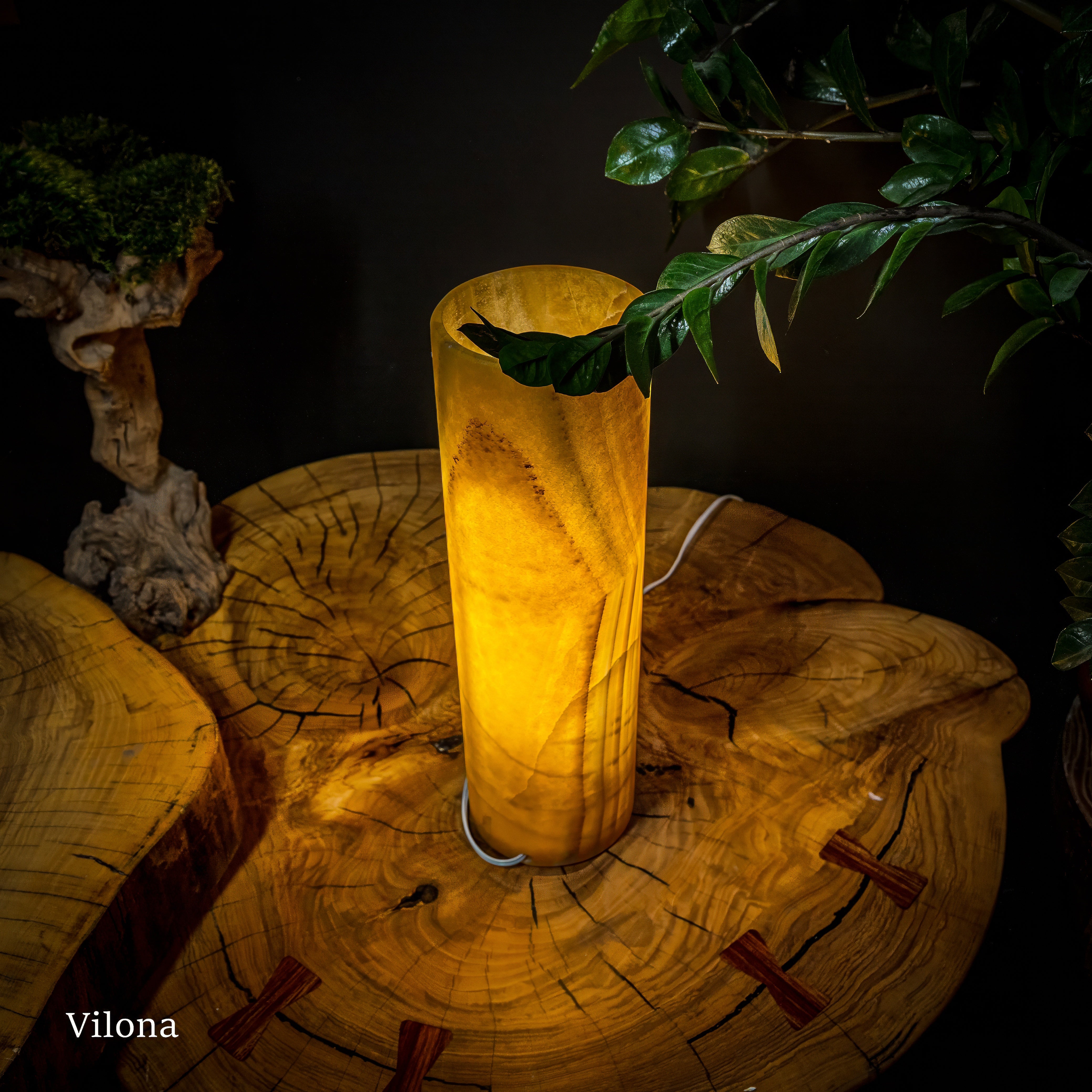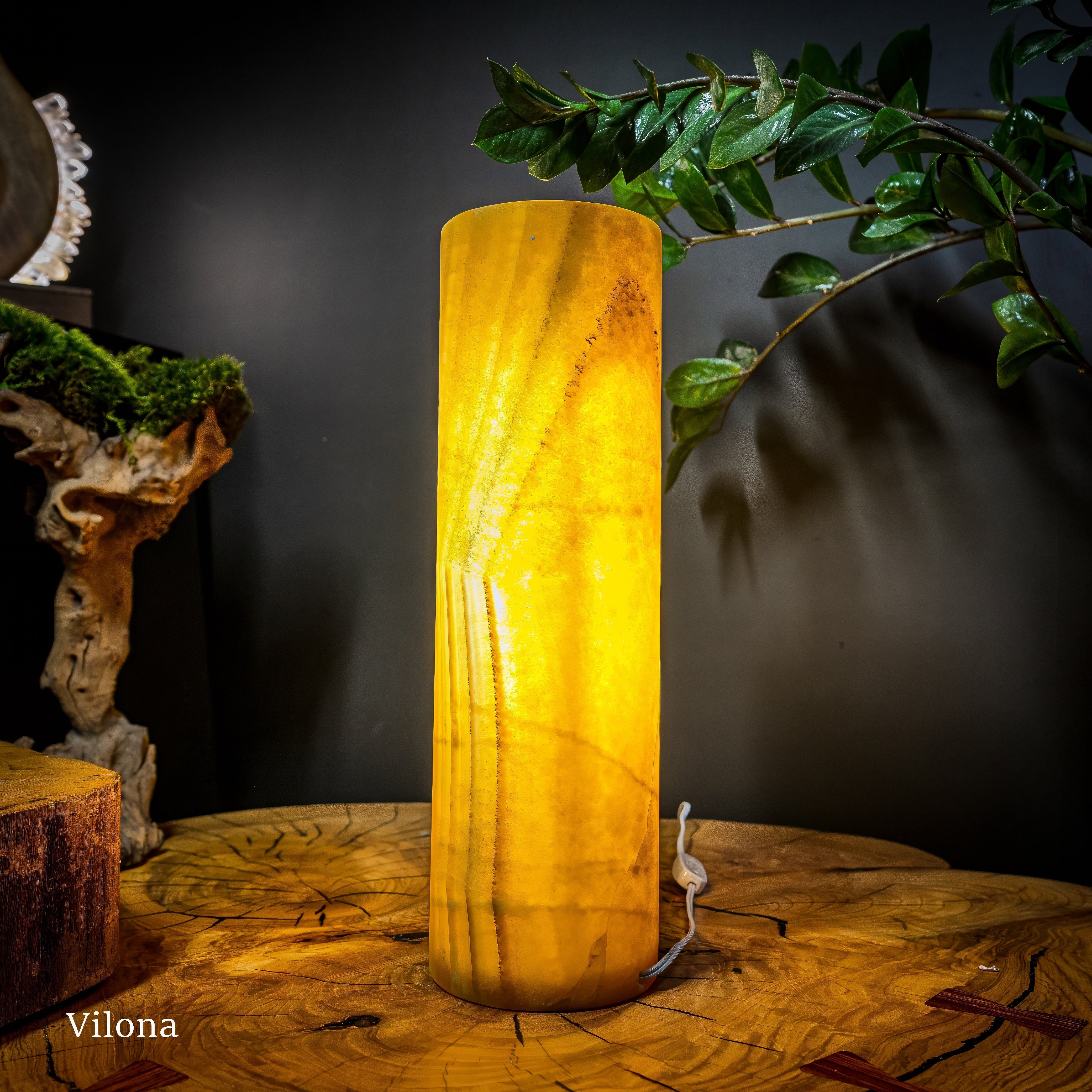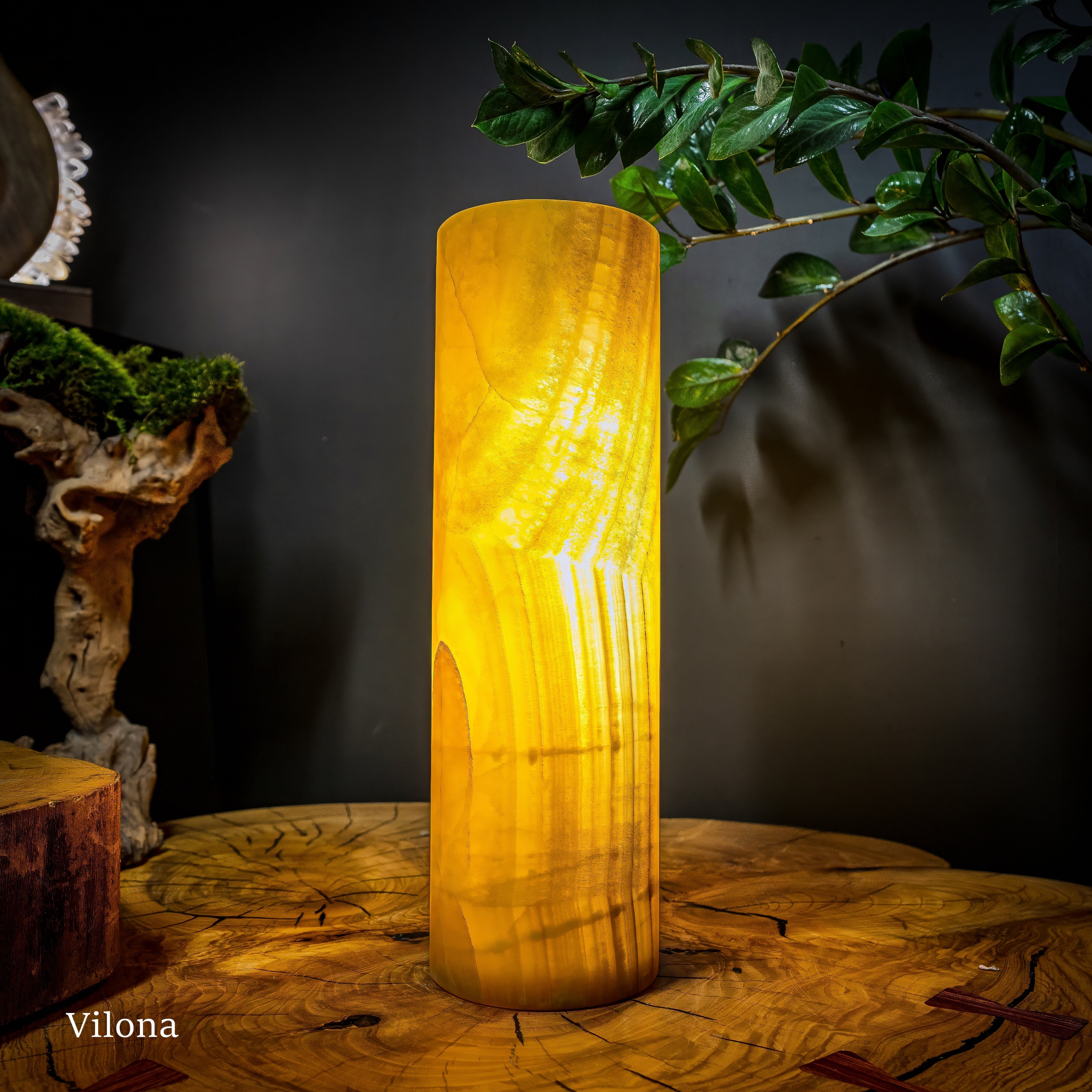 Embrace the glow of our Vilona Onyx Luminaries, where each is a celebration of earthly elegance. Sourced from the finest onyx stone, every lamp is an individual masterpiece, showcasing the mesmerizing hues and patterns that only nature can create. Our collection extends its homage to natural beauty with an exquisite selection of luminaries, tables and accent pieces thoughtfully designed to bring the splendor of crystalline minerals into your home.