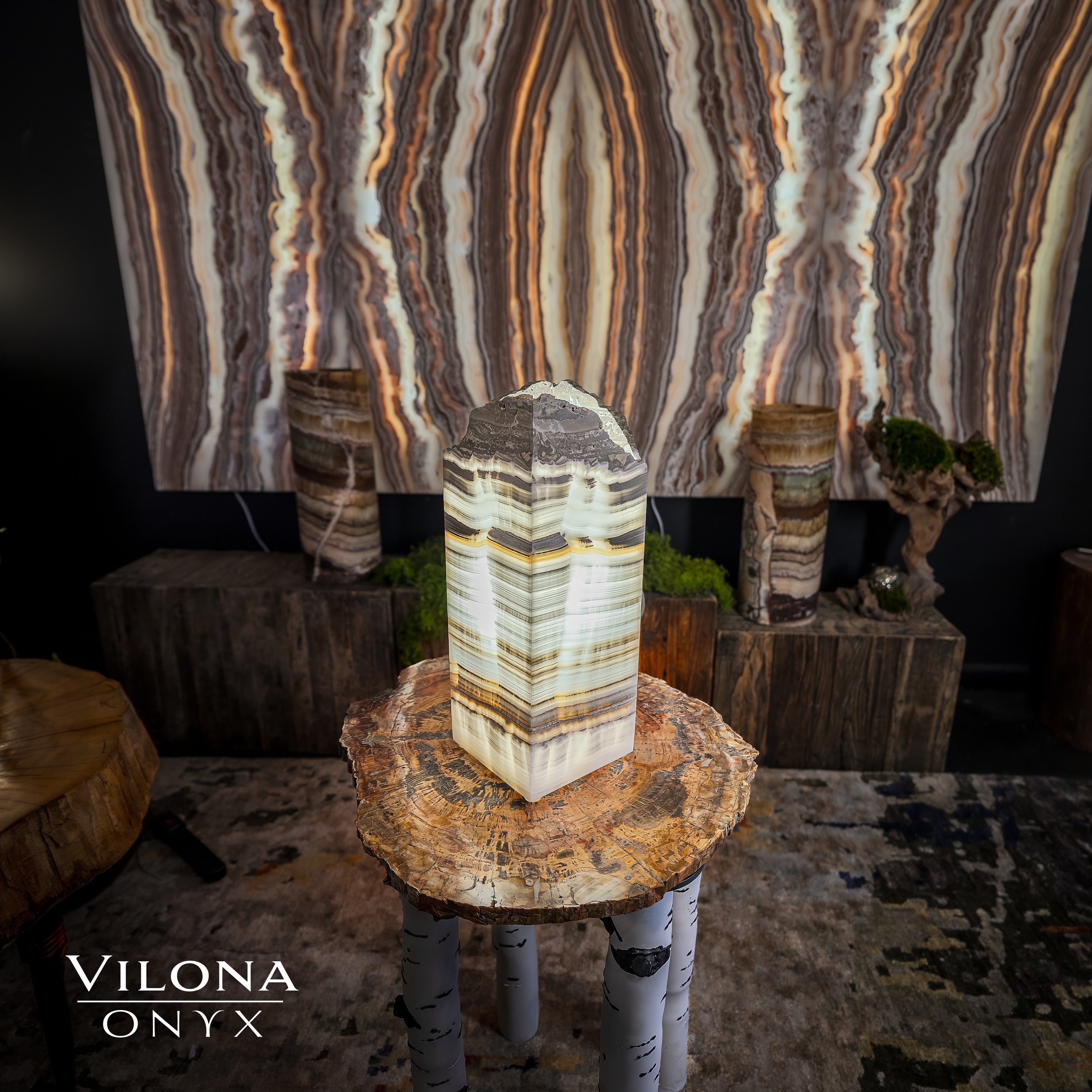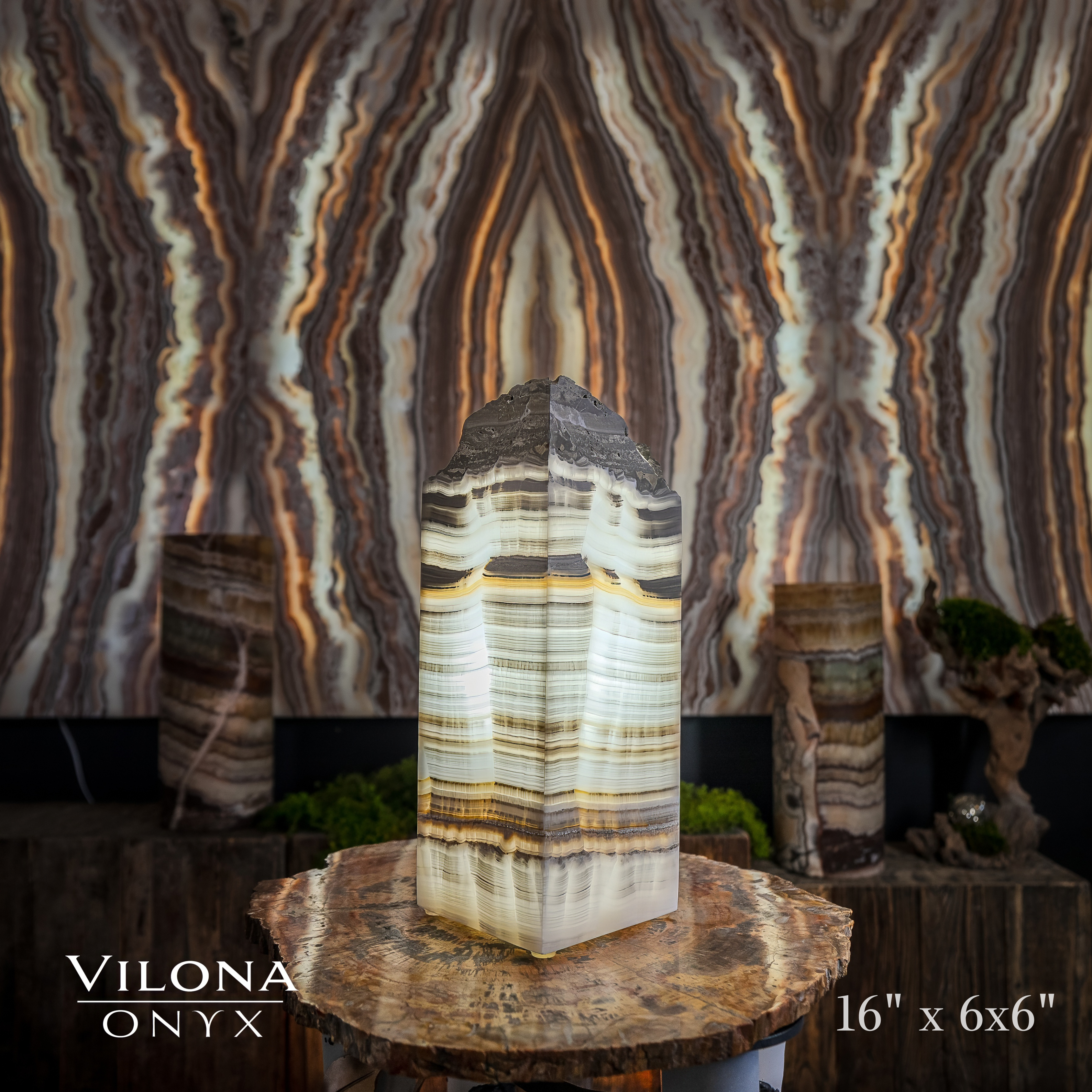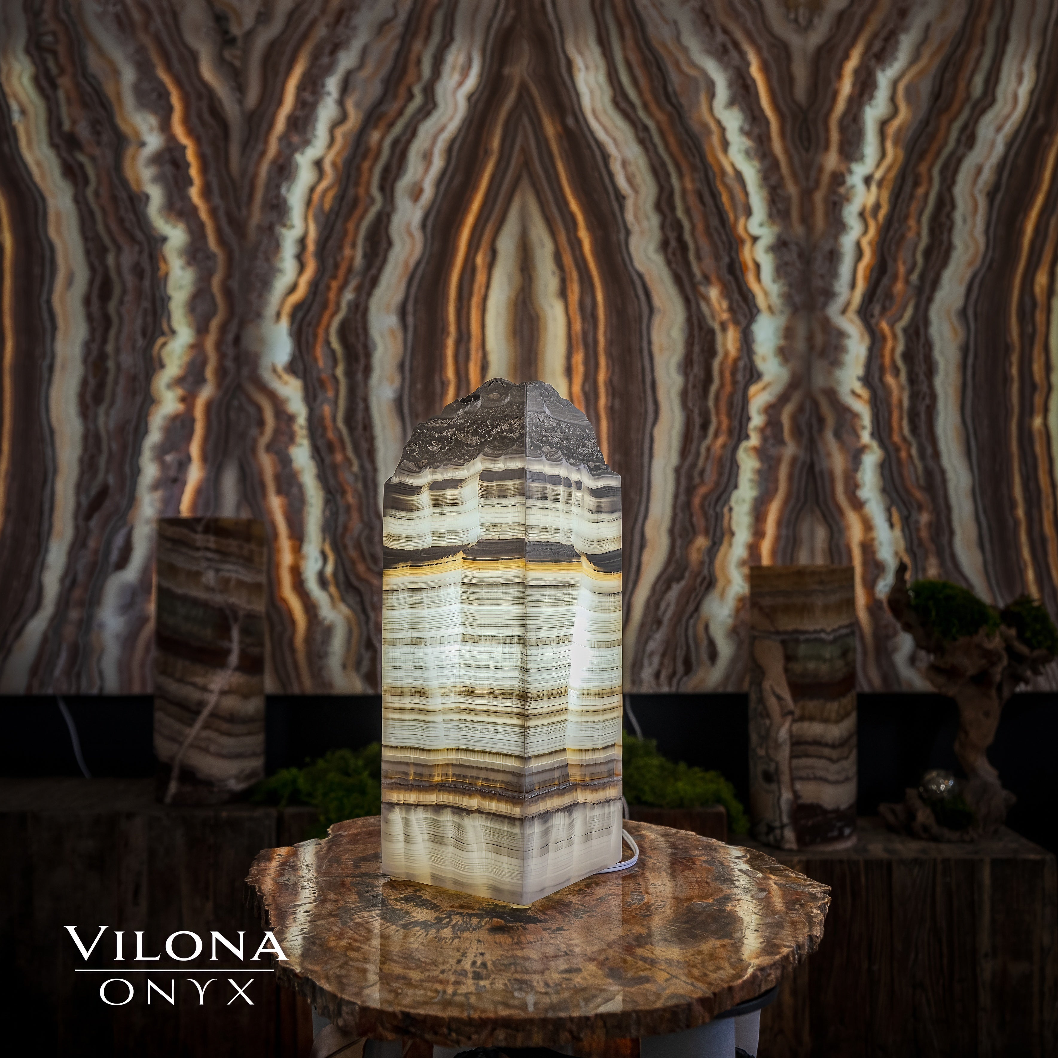 It's important to note that each piece of onyx we have in stock is unique. Just like a human fingerprint, no two lamps are identical, reflecting the individuality and exclusivity valued by our clientele. Each Vilona Onyx lamp is truly one-of-a-kind, a unique piece of art waiting to adorn your space!