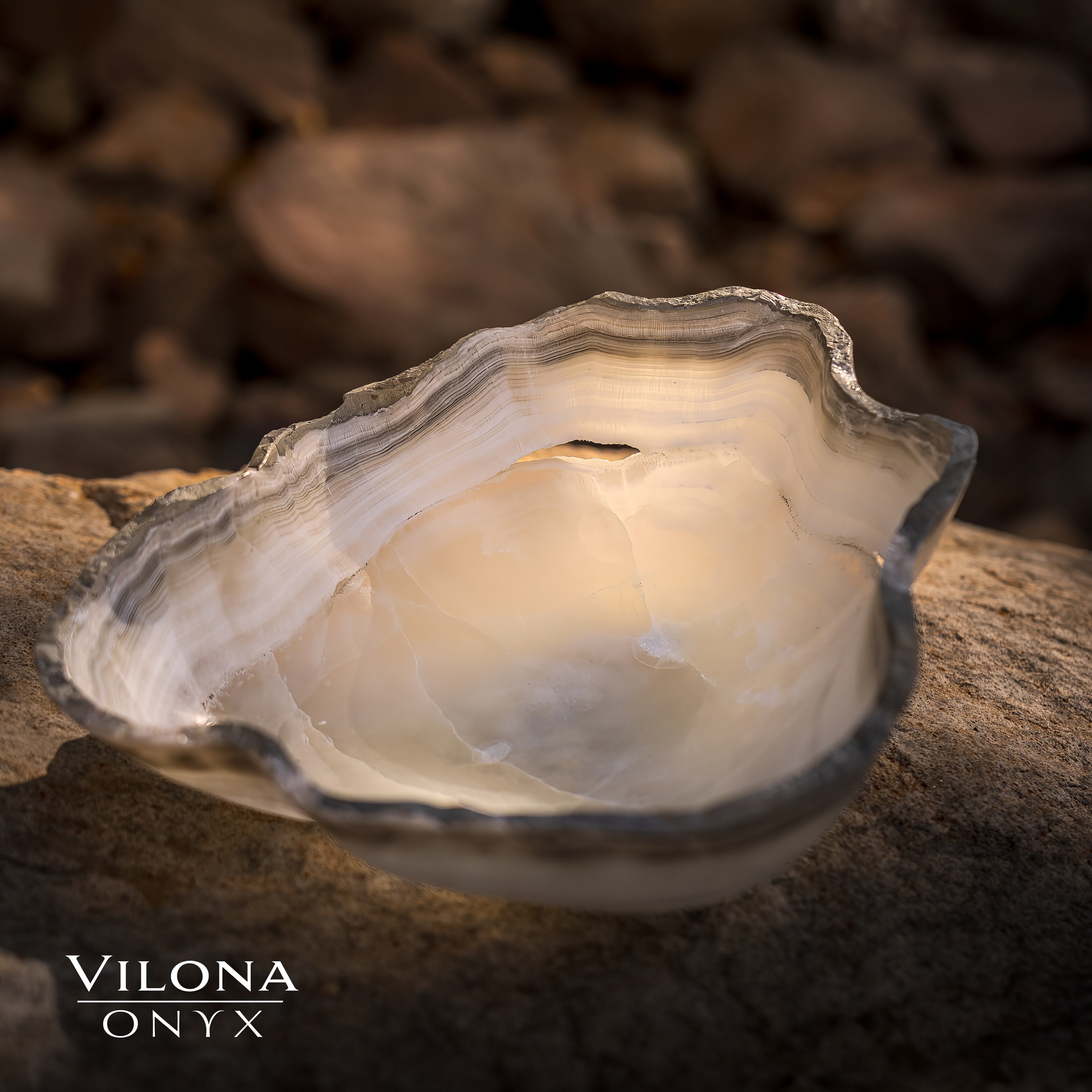 Each White Ice Bowl is hand-carved with meticulous care, celebrating the ethereal beauty of White Ice Onyx. Sourced ethically from our trusted quarry—a partnership spanning over 45 years—these bowls reflect the highest standards of quality and authenticity. The Vilona family’s craftsmanship transforms each piece into a unique work of art, blending timeless design with the stone’s natural radiance.