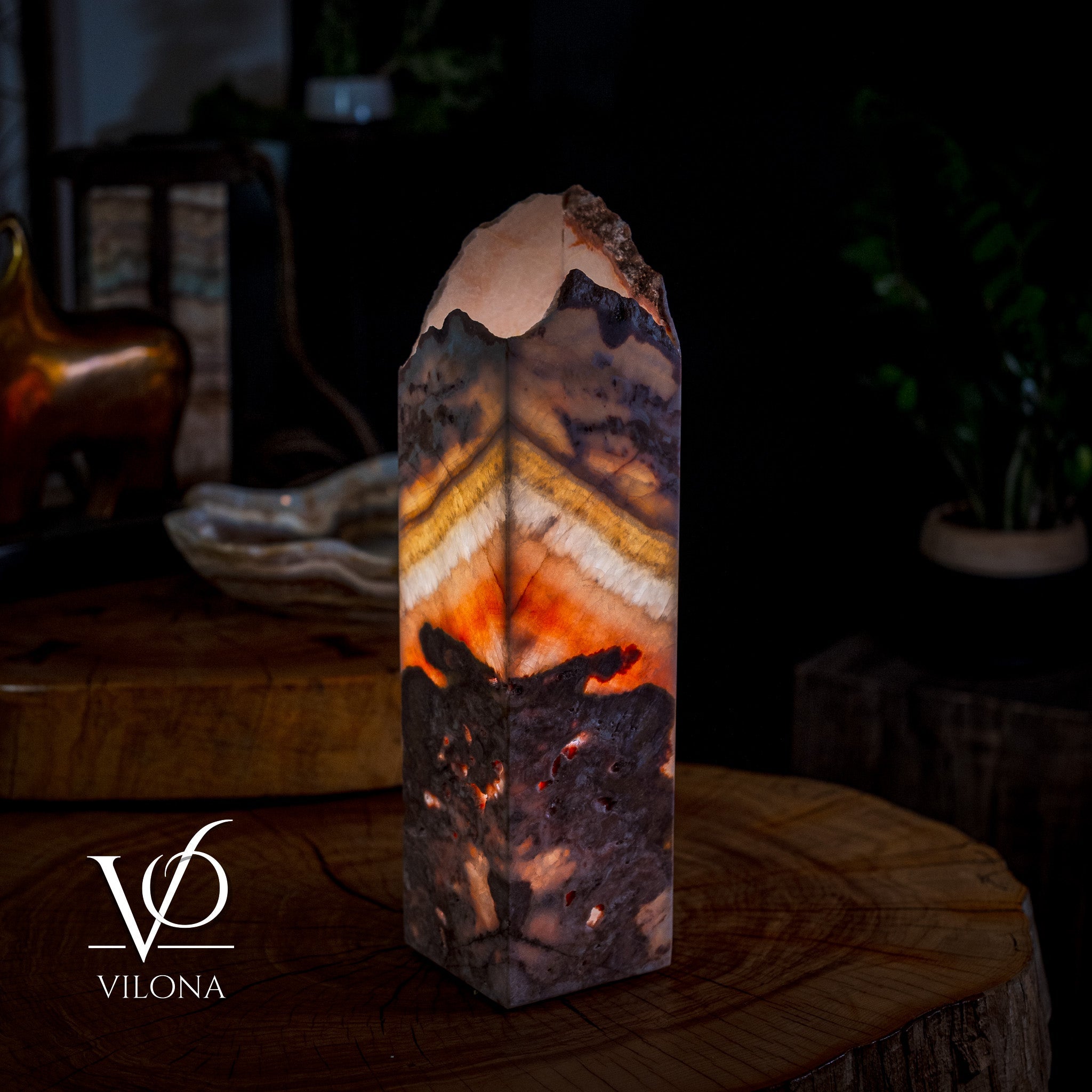 At Vilona Onyx, our lamps are more than lighting; they are handcrafted sculptures carved from world-class stone. Every Razzberry Rosa lamp is shaped and polished to highlight the stone’s natural translucence, allowing the lamp to emit a warm, captivating glow that transforms your space with elegance and depth.