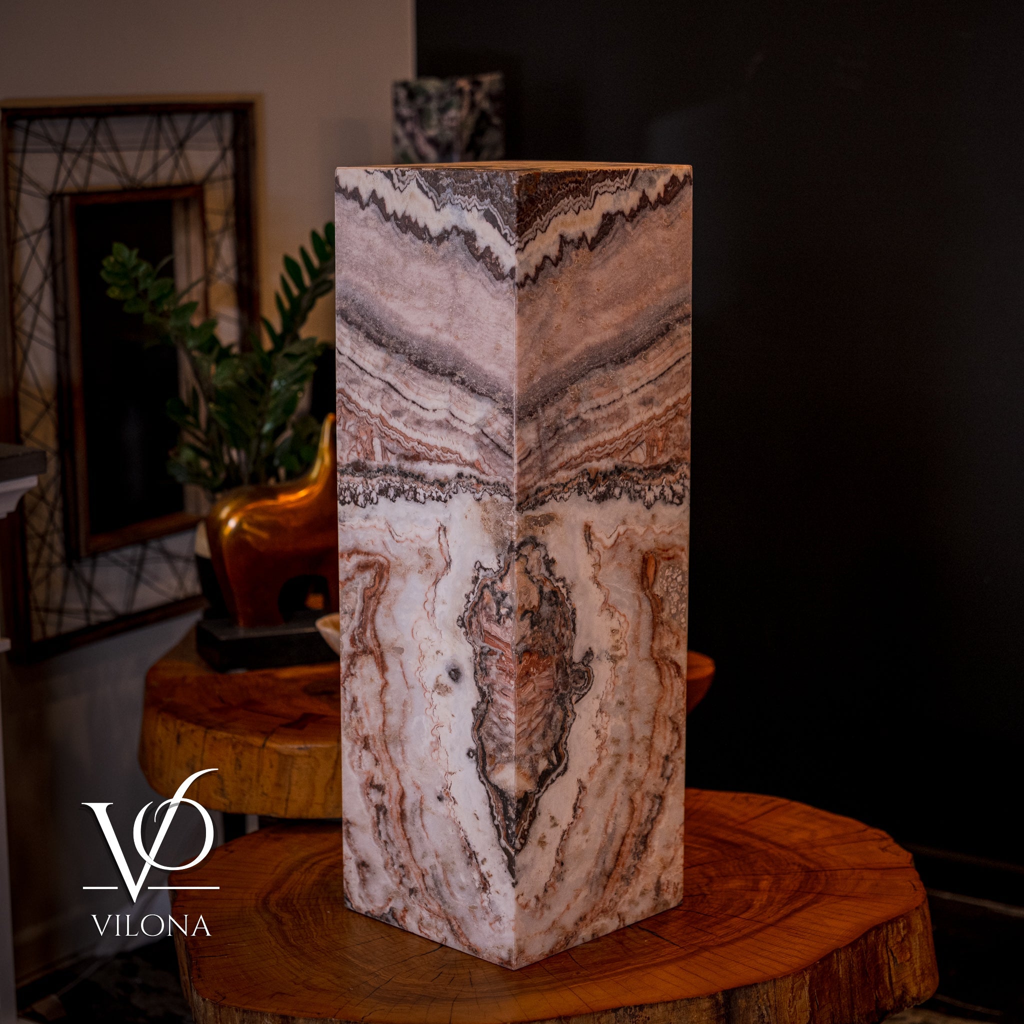 With over 45 years in Mexico's mining industry, Vilona ensures access to superior raw materials, guaranteeing quality and durability. Bring the serene beauty of nature into your home with Vilona Onyx lamps and experience a blend of exquisite design and craftsmanship. Transform your decor with this one-of-a-kind piece of artistry today.