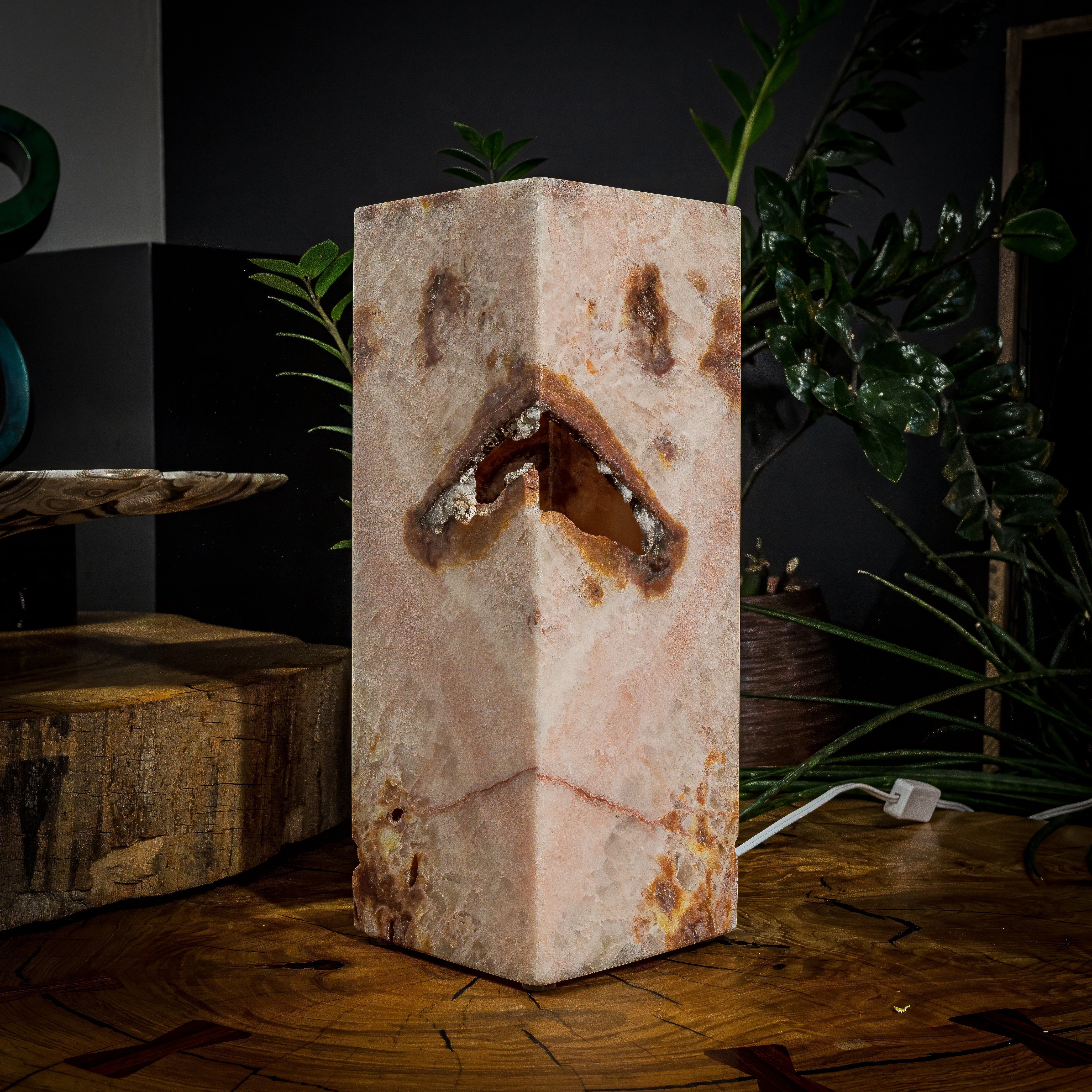 At Vilona Onyx, our lamps are more than lighting; they are handcrafted sculptures carved from world-class stone. Every Razzberry Rosa lamp is shaped and polished to highlight the stone’s natural translucence, allowing the lamp to emit a warm, captivating glow that transforms your space with elegance and depth.