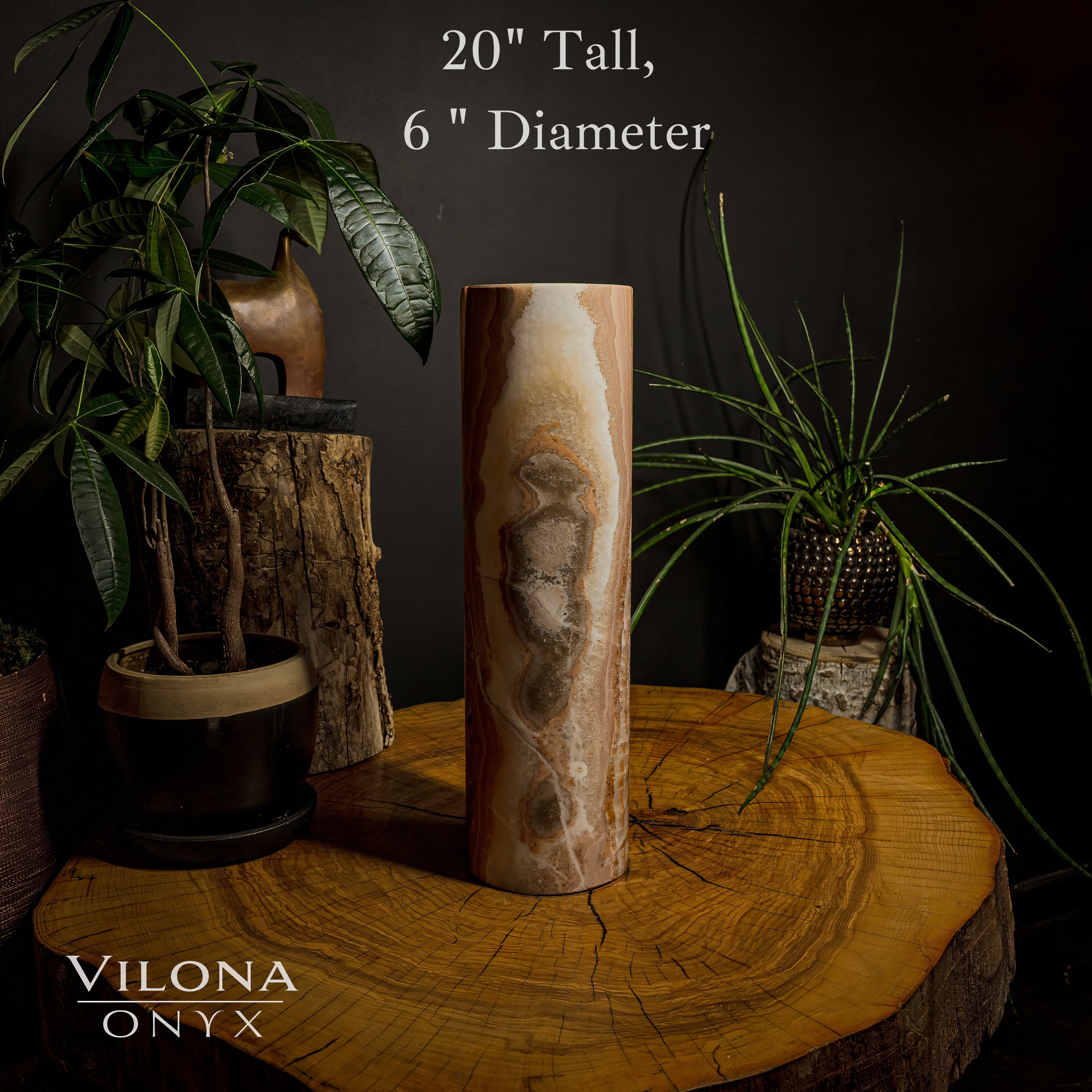 The onyx lamp displayed in this listing (20" Tall, x 6" Diameter)