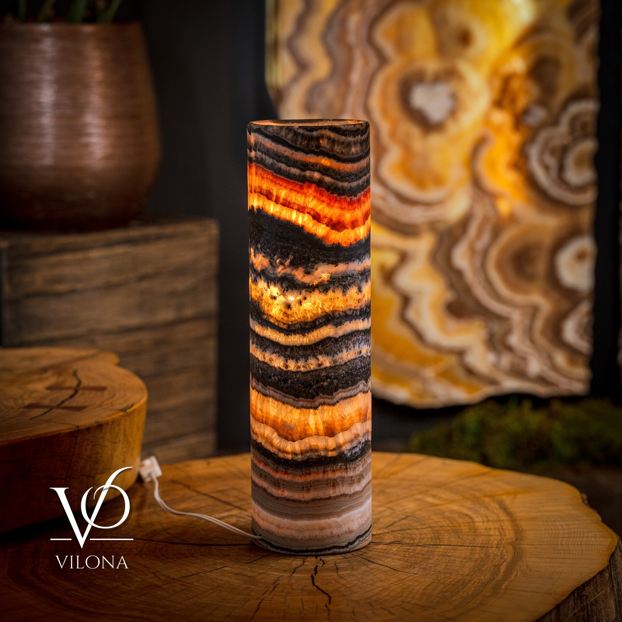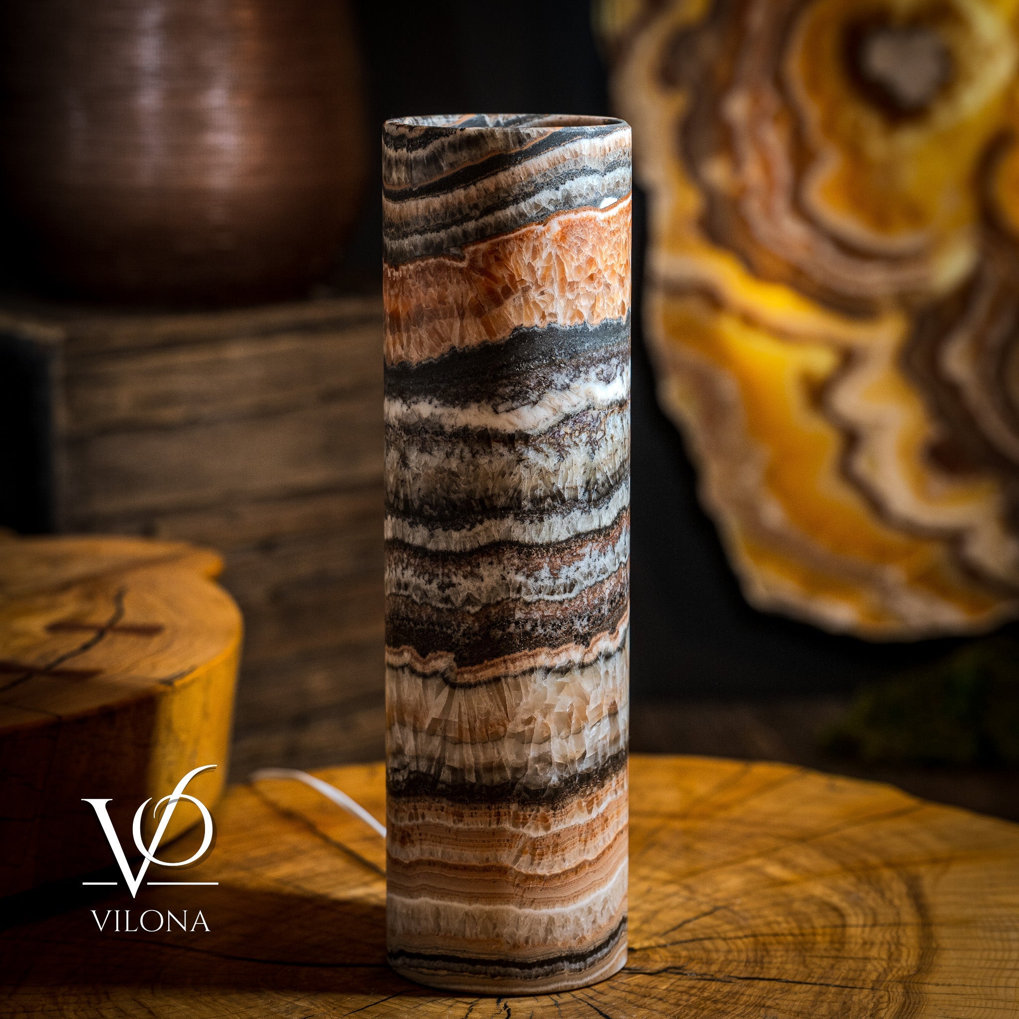 It's important to note that each piece of onyx we have in stock is unique. Just like a human fingerprint, no two lamps are identical, reflecting the individuality and exclusivity valued by our clientele. Each Vilona Onyx lamp is truly one-of-a-kind, a unique piece of art waiting to adorn your space!