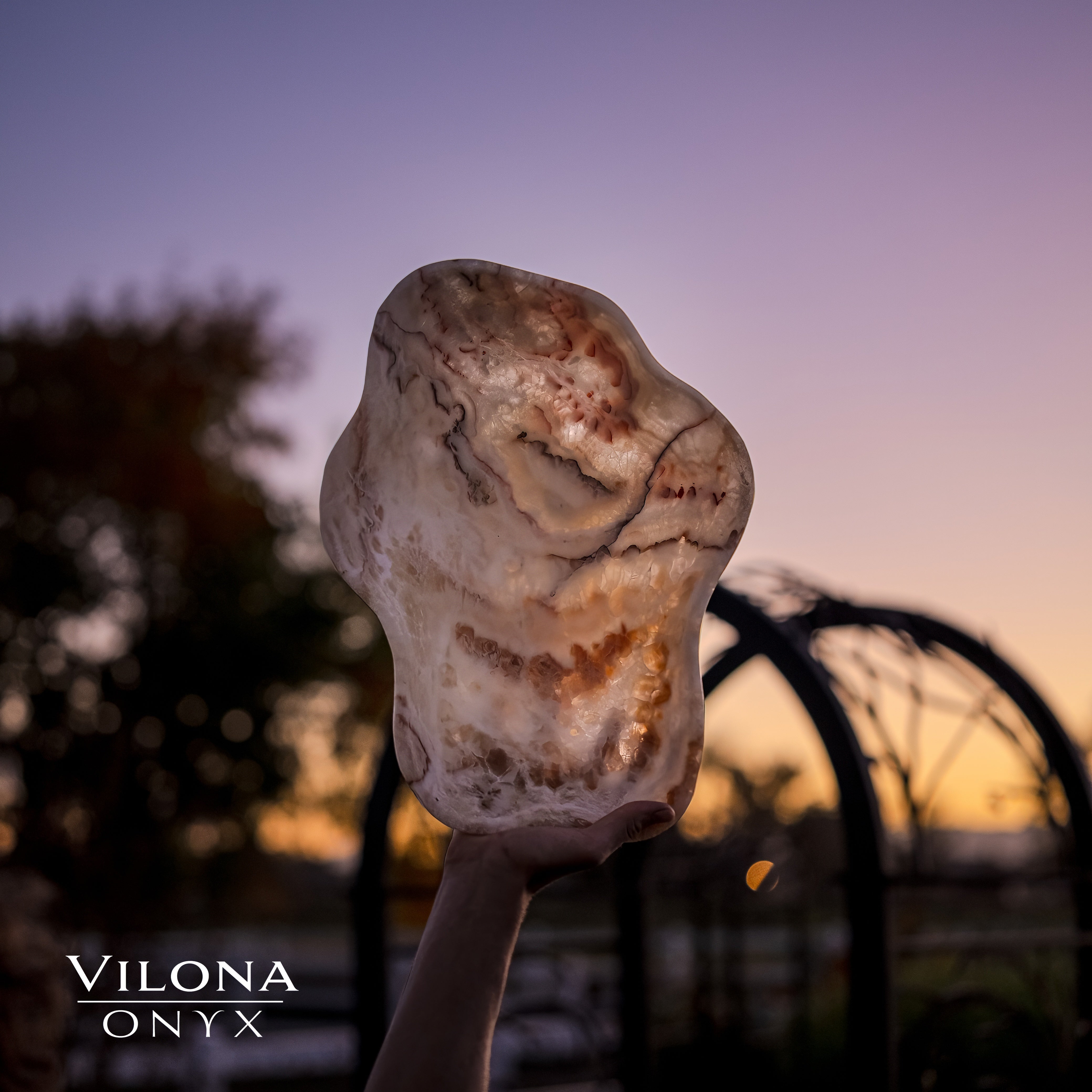 We're excited to reveal Exotic Tangerine Onyx, the newest gem from our quarry! This captivating mix of tan/green and multicolor is absolutely breathtaking. We offer a range of styles in this distinctive shade, but act quickly - it's a limited edition, (1/2) and once they're gone, there's no coming back! Stay on the lookout for this uncommon and mesmerizing onyx hue. Believe us, it's not something you'll want to let pass by.