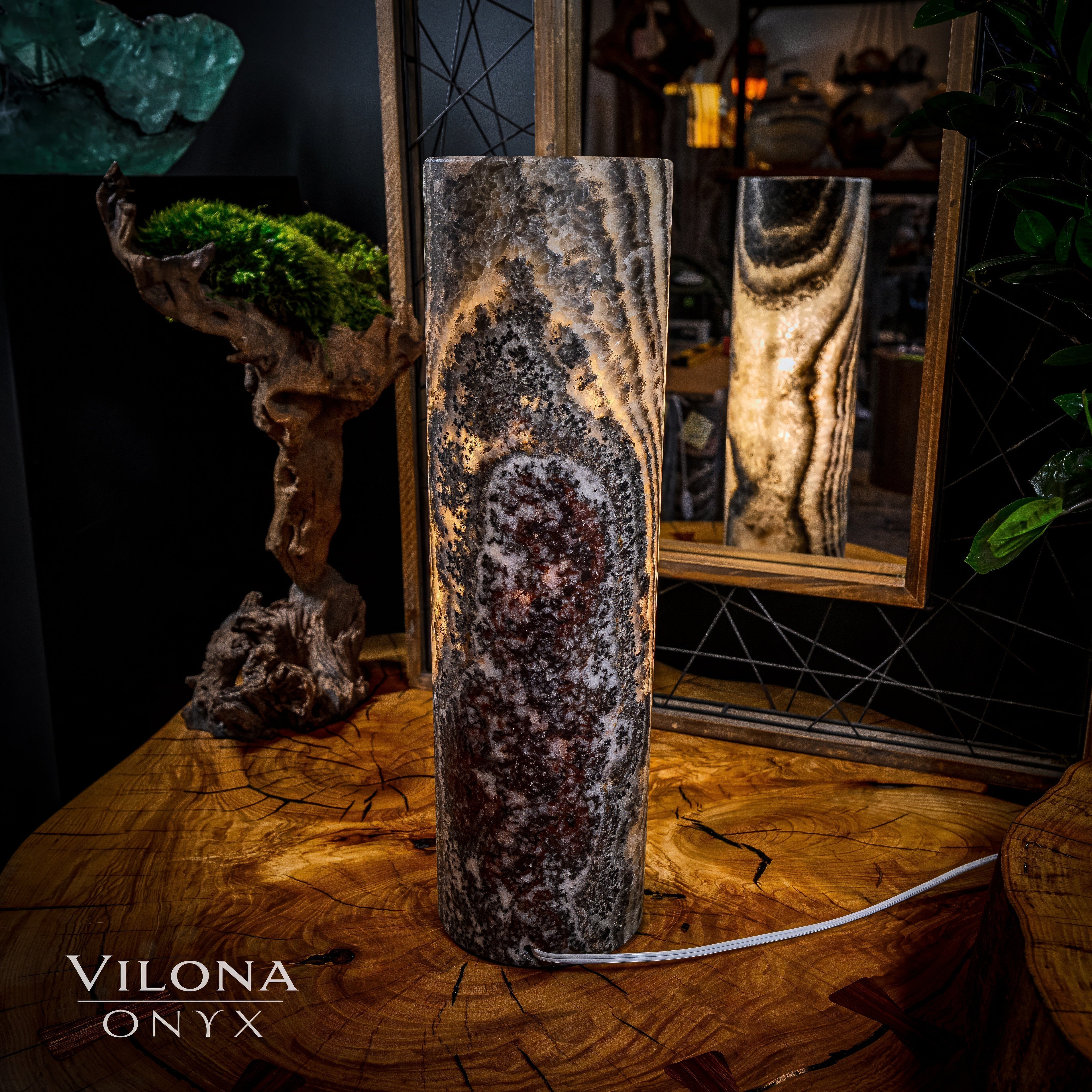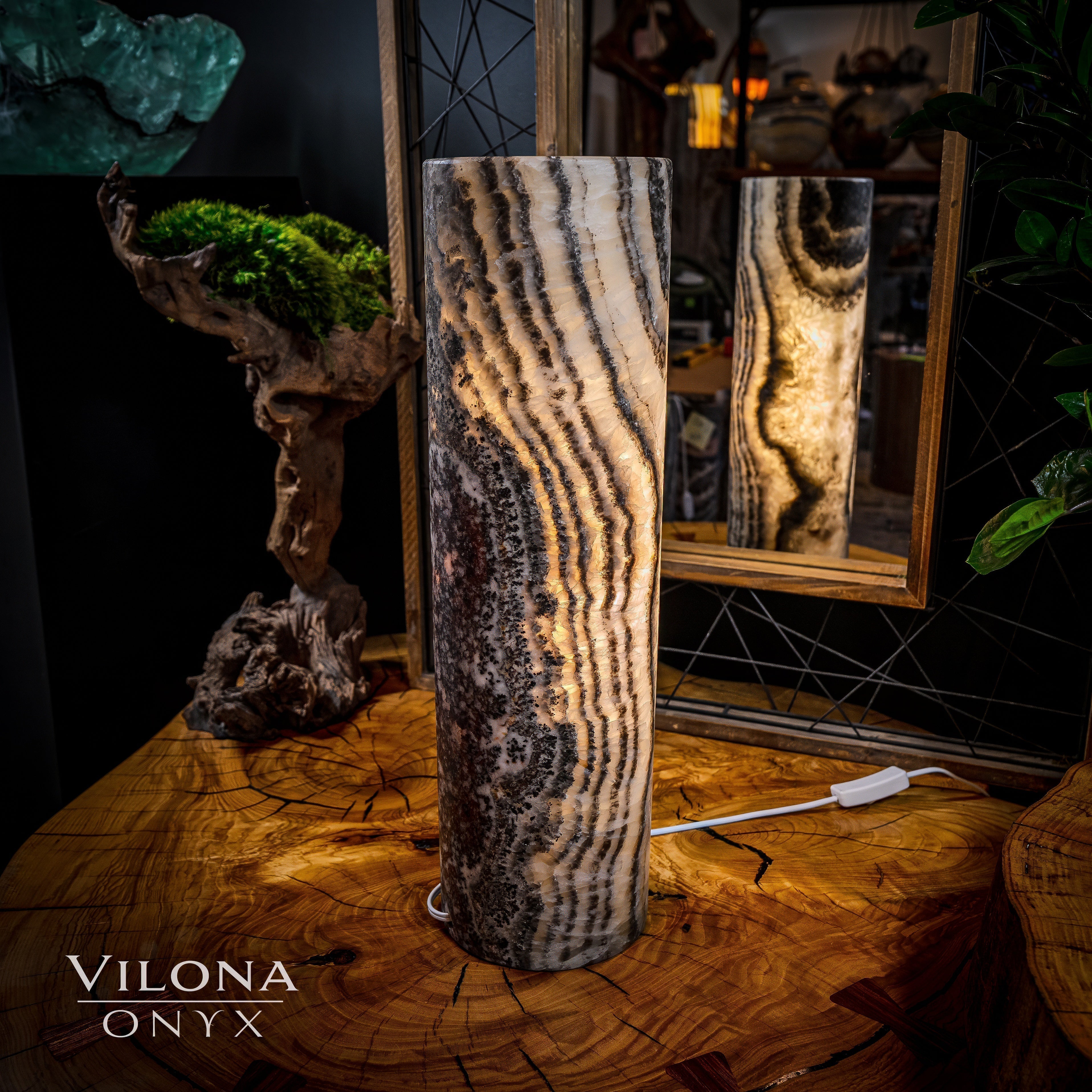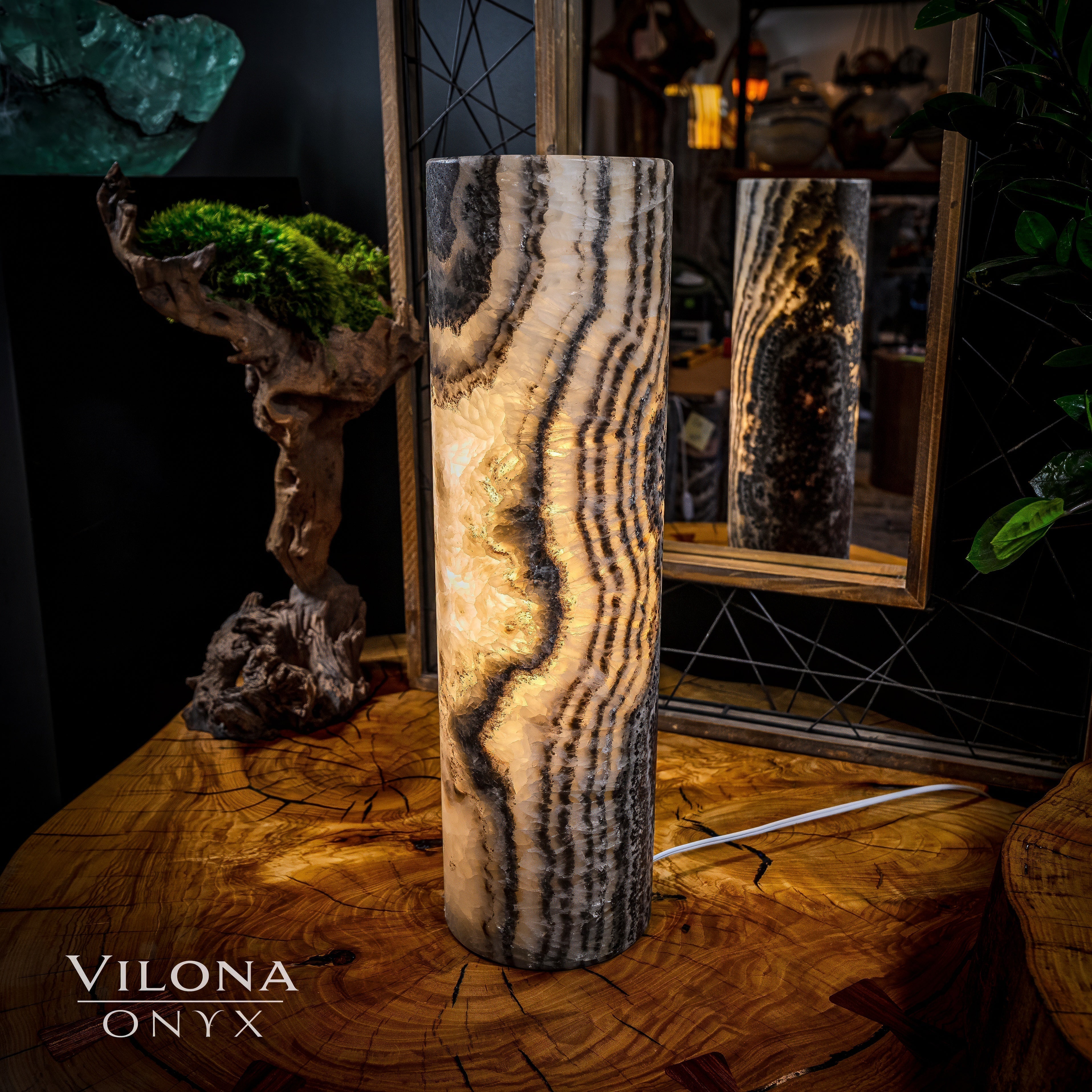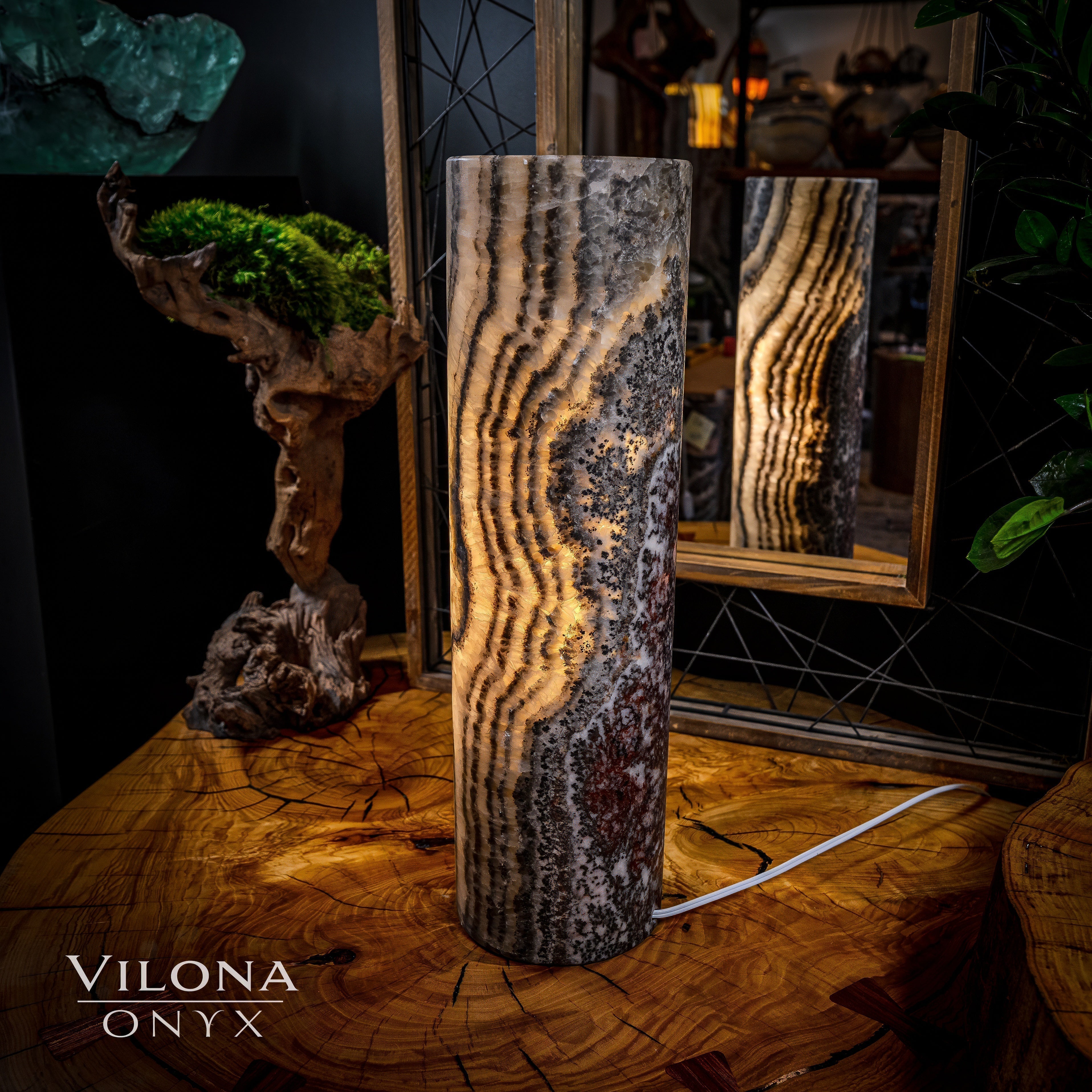 It's important to note that each piece of onyx we have in stock is unique. Just like a human fingerprint, no two lamps are identical, reflecting the individuality and exclusivity valued by our clientele. Each Vilona Onyx lamp is truly one-of-a-kind, a unique piece of art waiting to adorn your space!