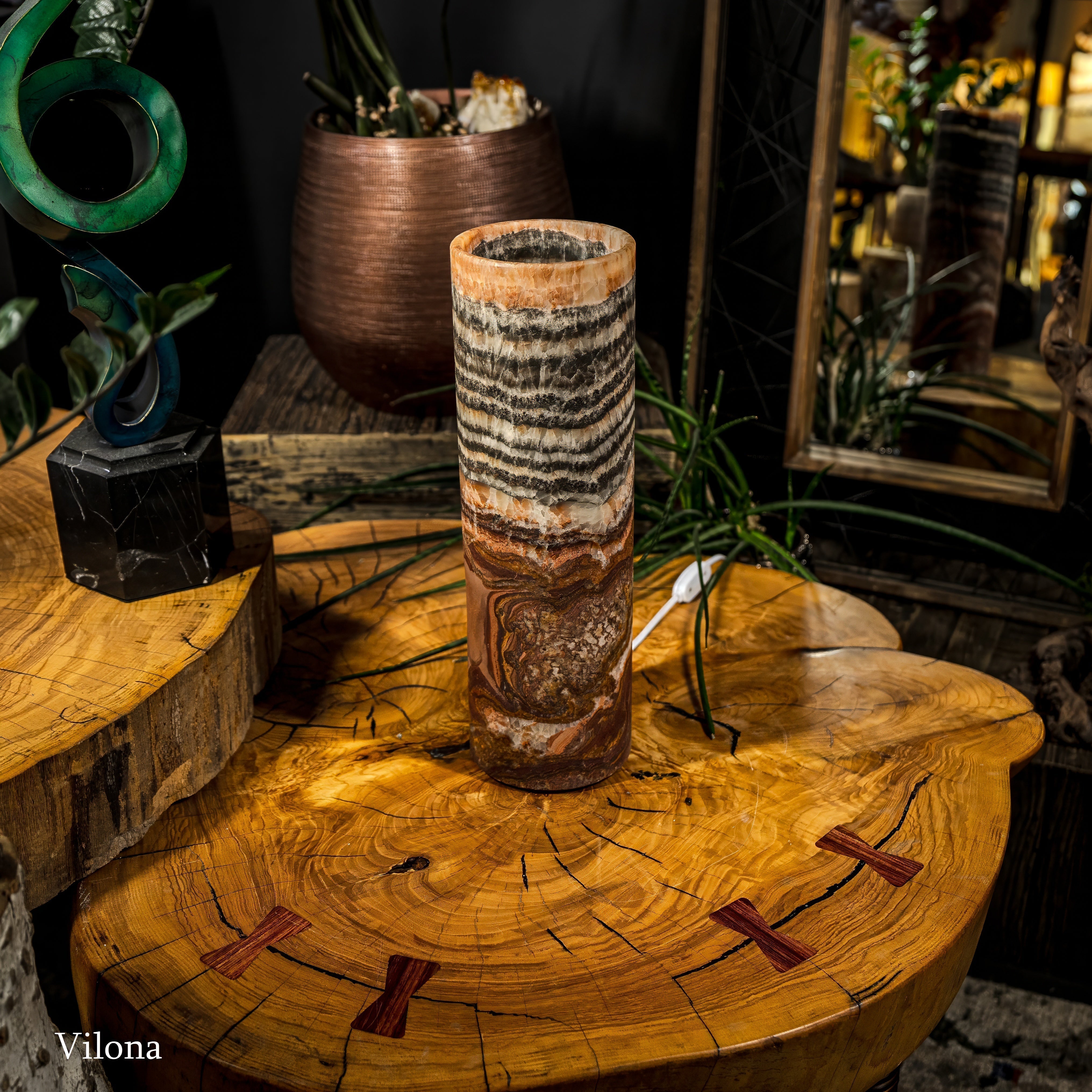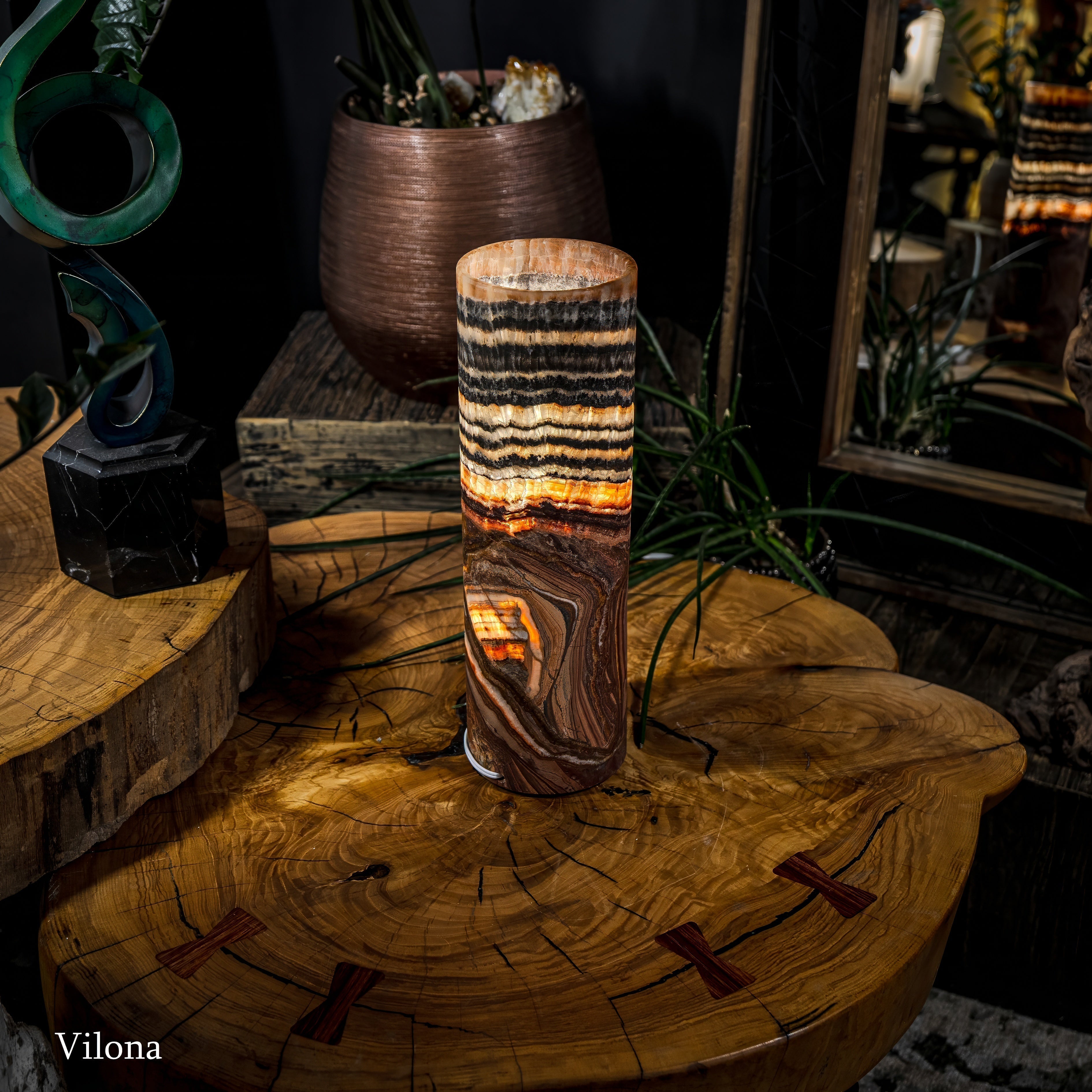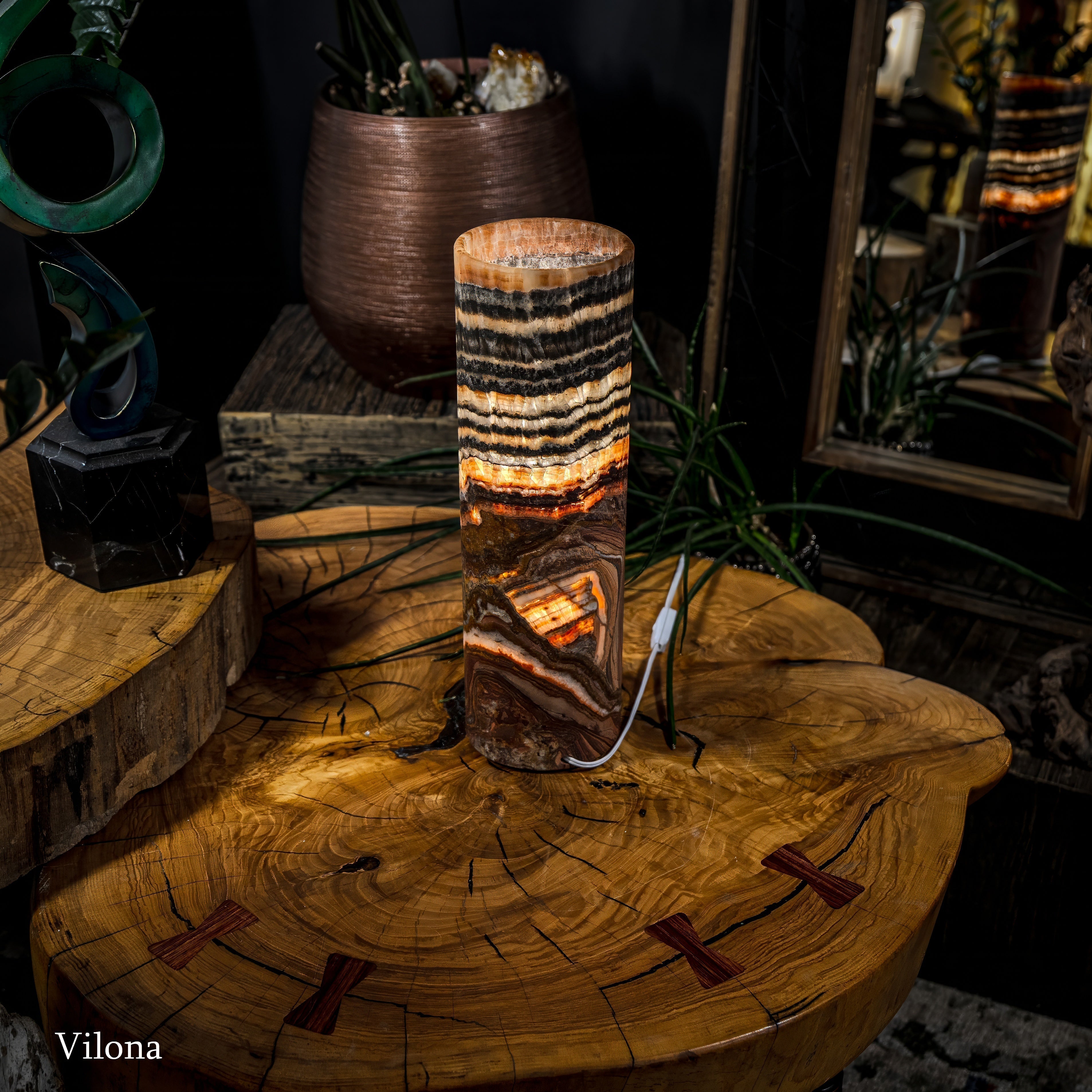It's important to note that each piece of onyx we have in stock is unique. Just like a human fingerprint, no two lamps are identical, reflecting the individuality and exclusivity valued by our clientele. Each Vilona Onyx lamp is truly one-of-a-kind, a unique piece of art waiting to adorn your space!