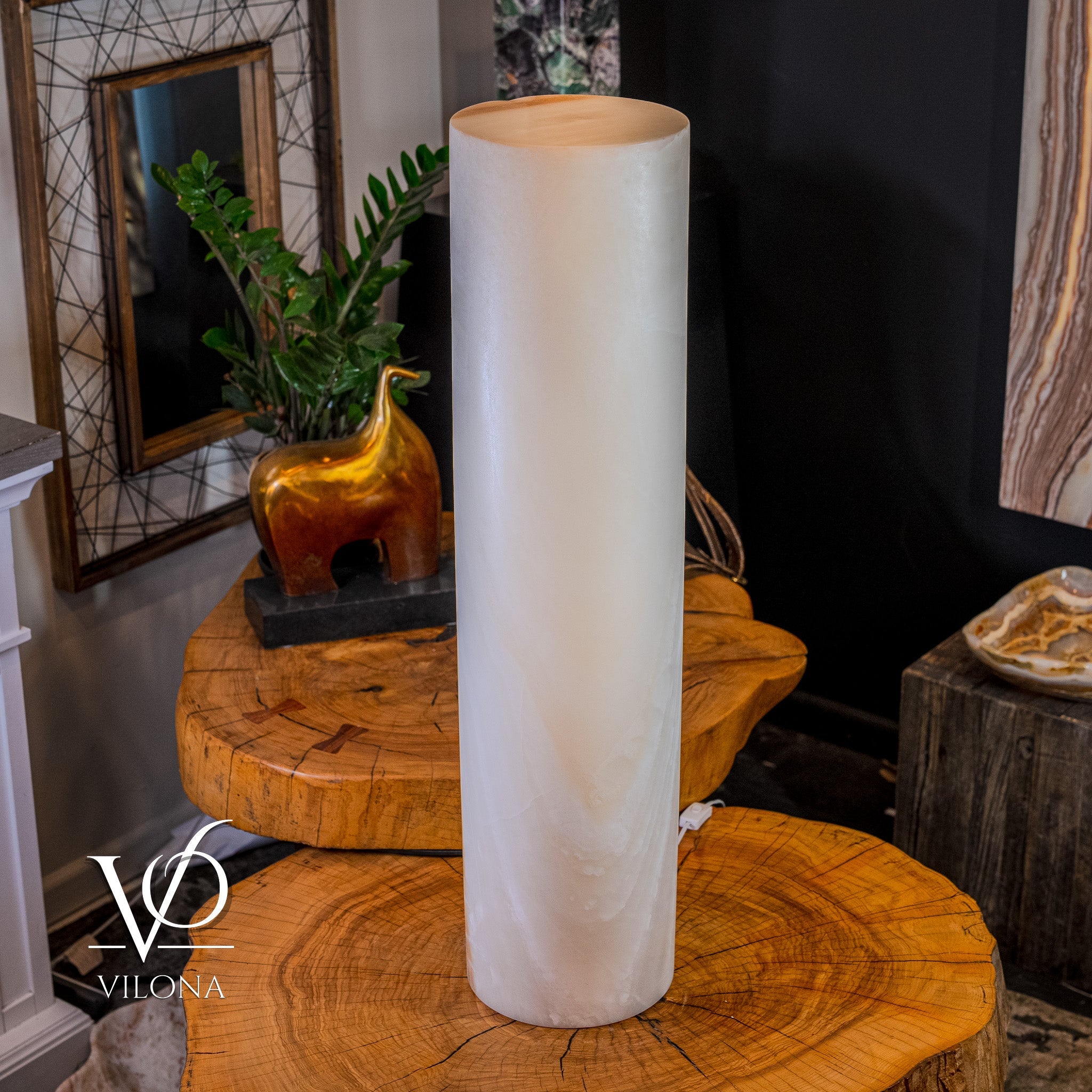 White Ice Onyx Floor Lamp (Cylinder Lamp #1) - Decor