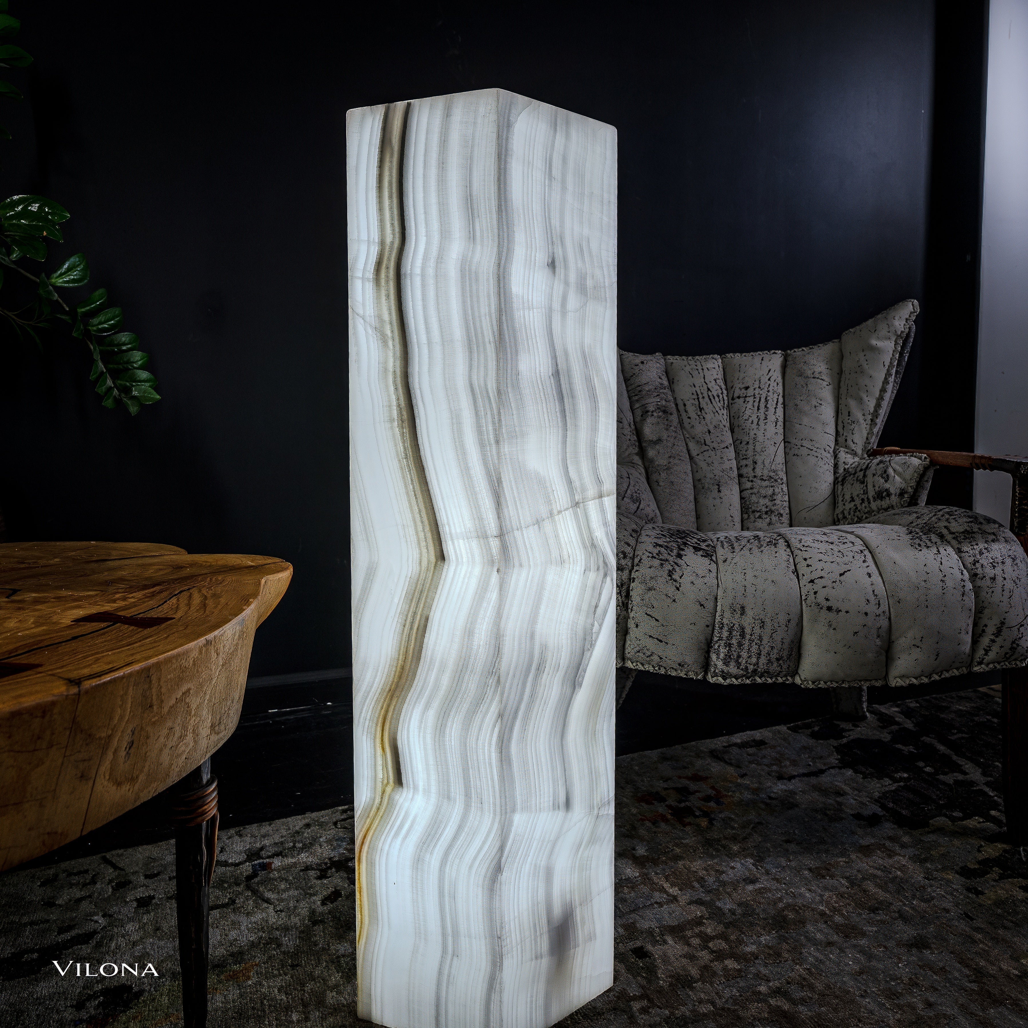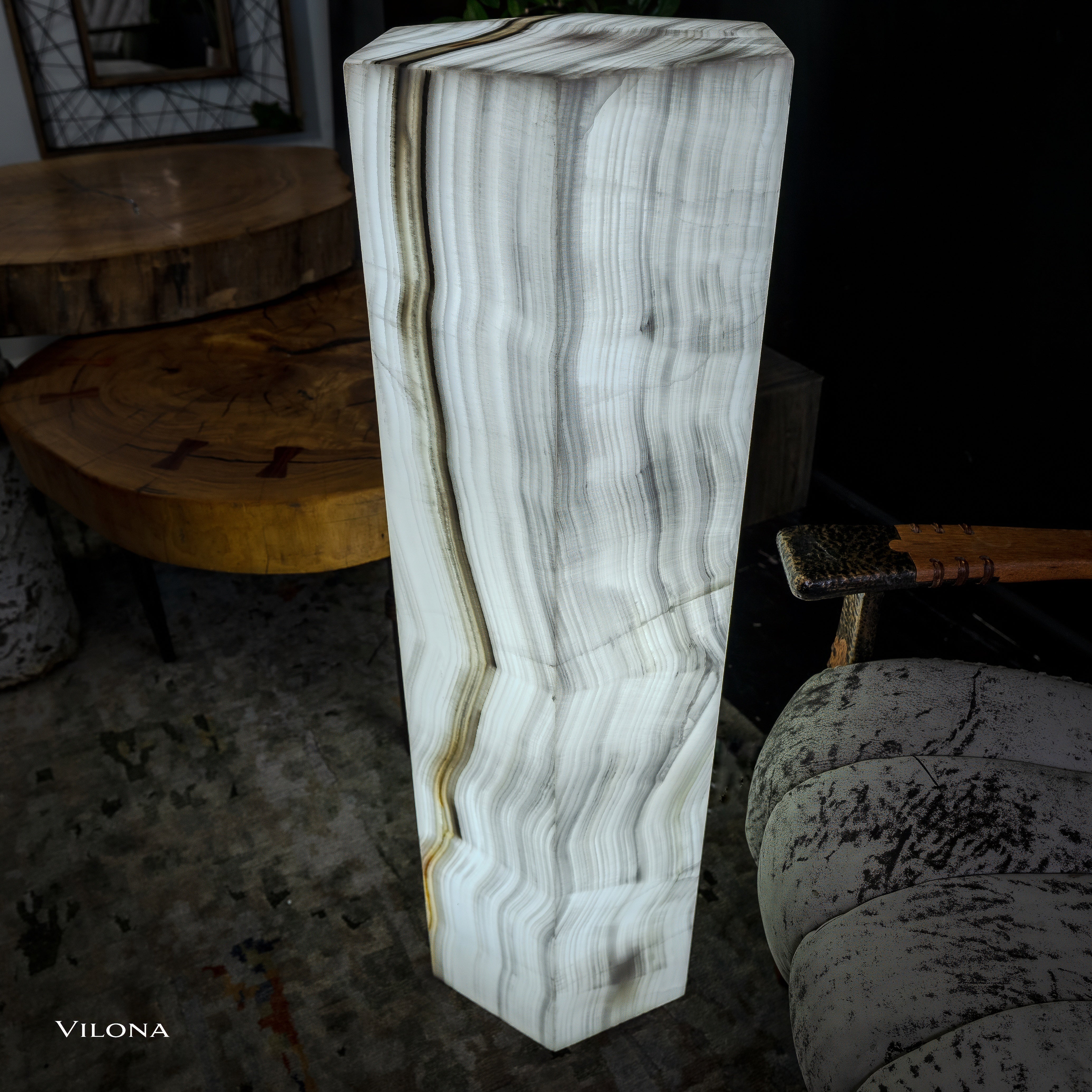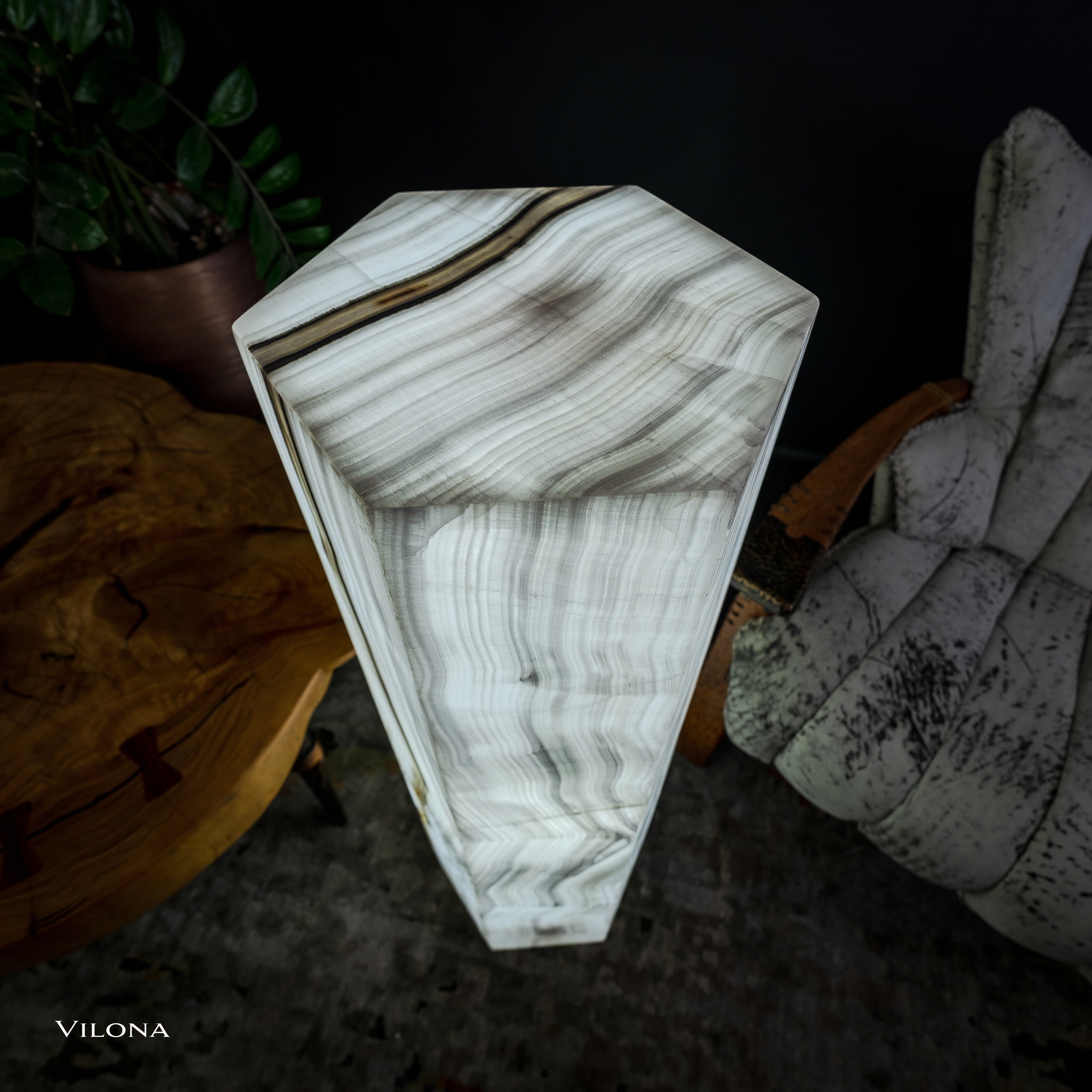 It's important to note that each piece of onyx we have in stock is unique. Just like a human fingerprint, no two lamps are identical, reflecting the individuality and exclusivity valued by our clientele. Each Vilona Onyx lamp is truly one-of-a-kind, a unique piece of art waiting to adorn your space!