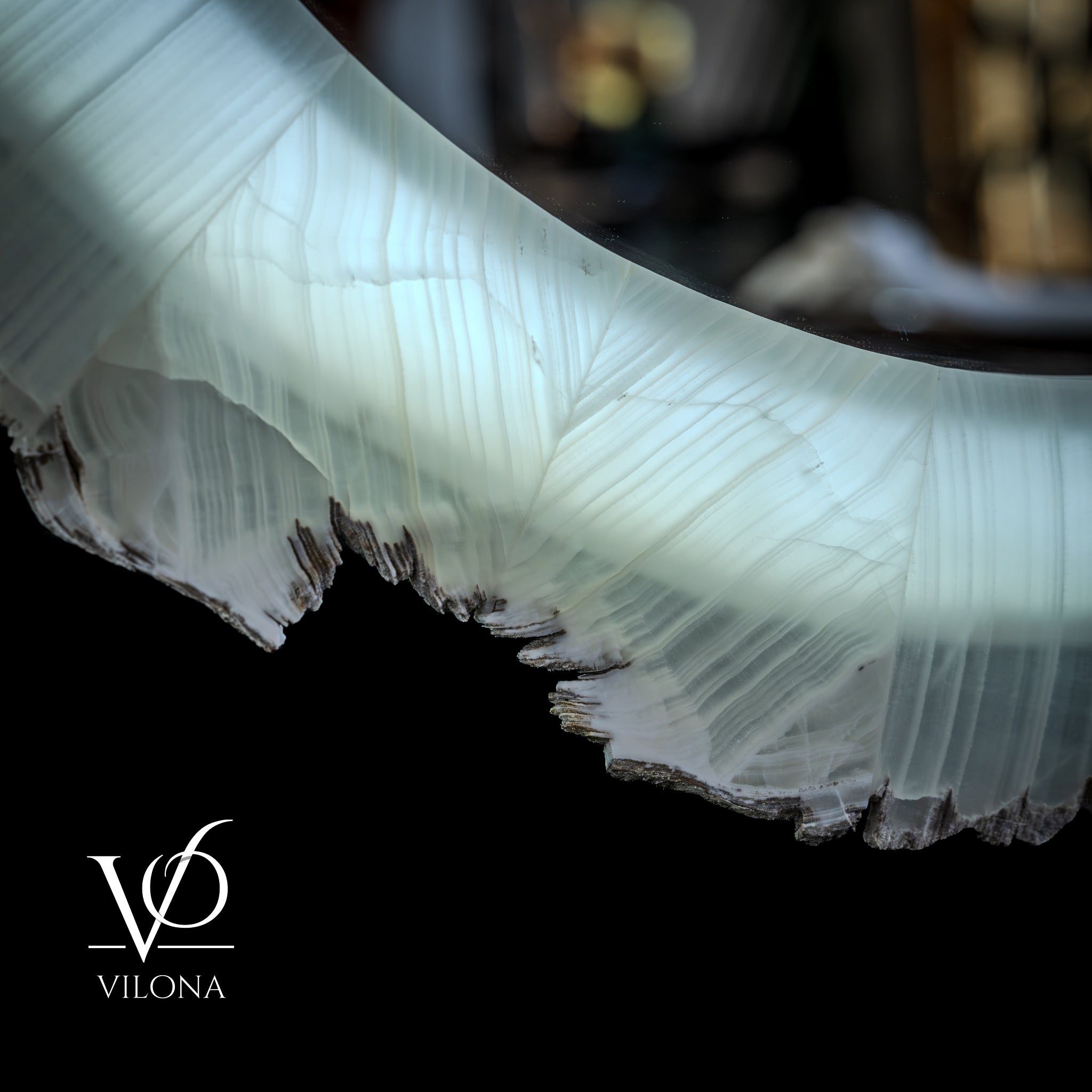 Because this piece is made from authentic natural stone, every mirror will feature unique variation in color, translucency, pattern, and banding. These natural differences are part of what make each Vilona Onyx creation so special.